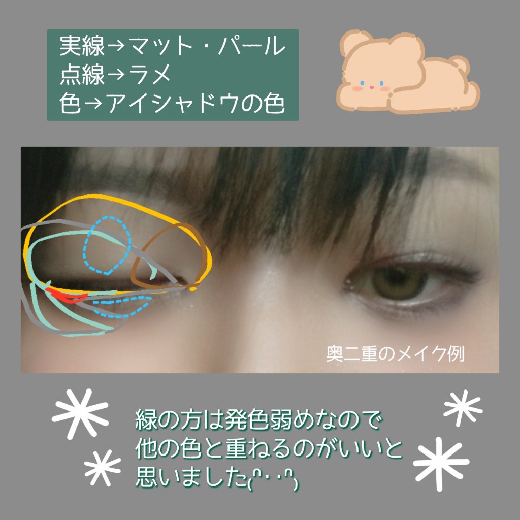 ダブルラインは人の好みもあると思いますが、アイシャドウが飛んじゃう私にとっては情報量を増やせるので重宝しています🎶 ダブルラインは目を開けた状態でちょっとずつ描き進めて、アイシャドウや綿棒などで軽くぼかすといい感じに描けます👍 アイライナーの色はあまり明るすぎない方が良く写真に写ります。 ただ、真っ黒なのは主張が激しすぎて自然には見えないかもなので注意が必要かもと思います。