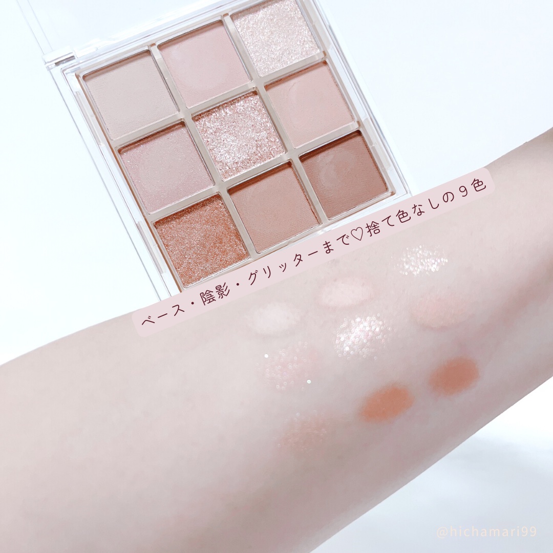 \今だけの限定色/ 1個税込¥500で話題のキレイアンドコー♡ 限定色のアイシャドウパレットをお試ししてみました♡ プチプラなのに9色も入っていてそれでいて結構高発色!! ラメはブラシよりもチップを使う方がしっかりのると思います⭐️ しっかり色をのせると私の肌色だと目元がくすんで見える気がしたので、このやり方だとモーヴも使えるぞ!!(歓喜🎉) 色味が合わなかったとしてもラメがとっても可愛い〜♡ ラメだけ使うと考えても安いよね♡ 私が買いに行ったウエルシアも残り3点になっていたり、結構売れてそうです💦