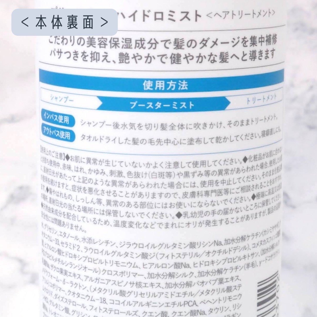 \想像以上の仕上がりだった激推しミスト/pluseauハイドロミストN《特徴》浸透性の高い美容成分配合により髪に潤いとツヤを与えてトリートメント効果を高めるブースター導入液。スタイリング(アイロンやドライヤー前に使うことでツヤやまとまりがでま...