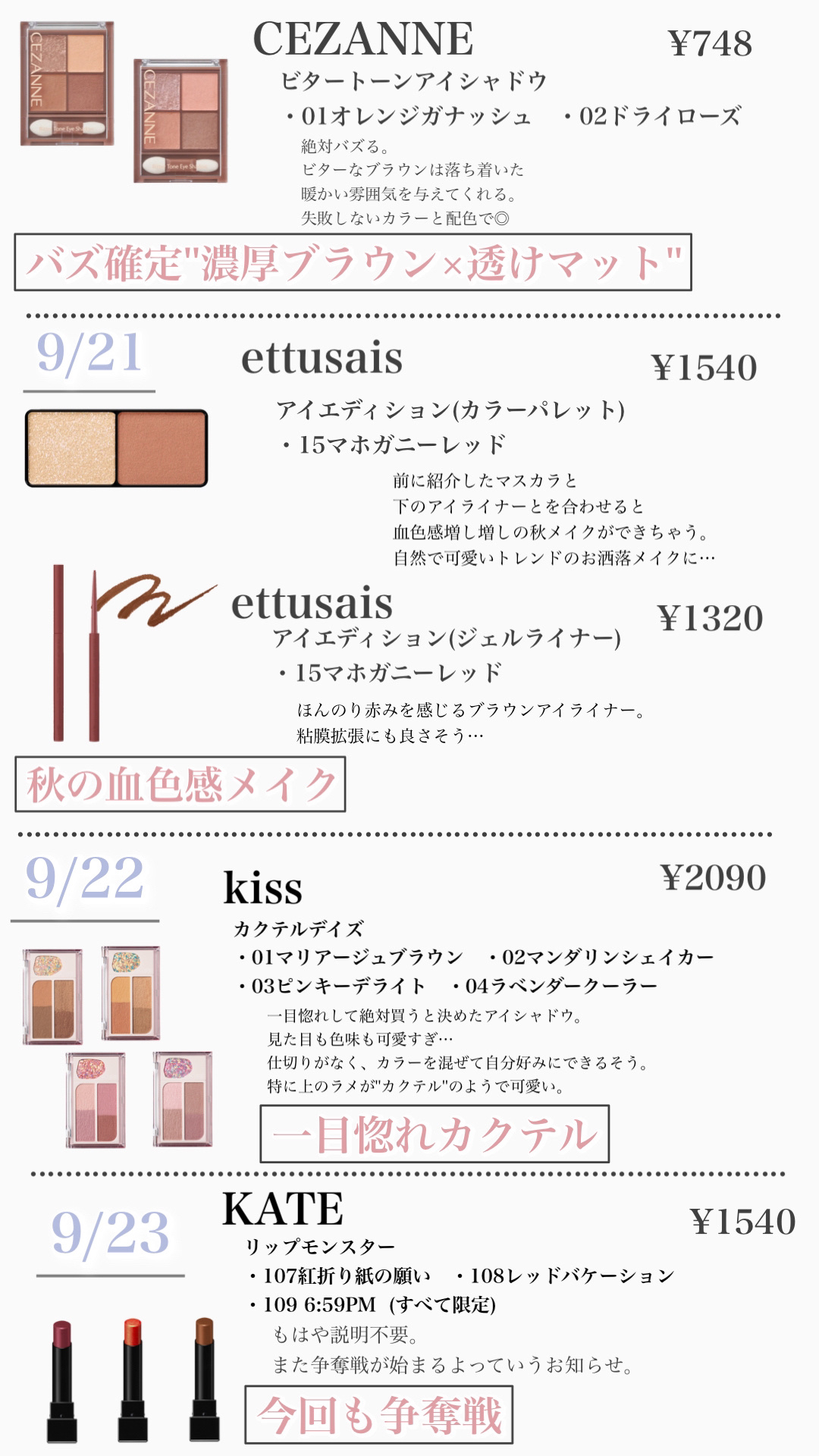 𓂃𓈒𓏸︎︎︎︎🕊【可愛すぎて悶絶!!10月中旬~12月プチプラ新作コスメカレンダー】今年の秋冬も可愛くて優秀なプチプラコスメたちが大量に発売されます٩(๑>ᴗ<๑)۶その中でも特に要チェックなプチプラコスメをまとめました𓂃🫧参考になると嬉し...