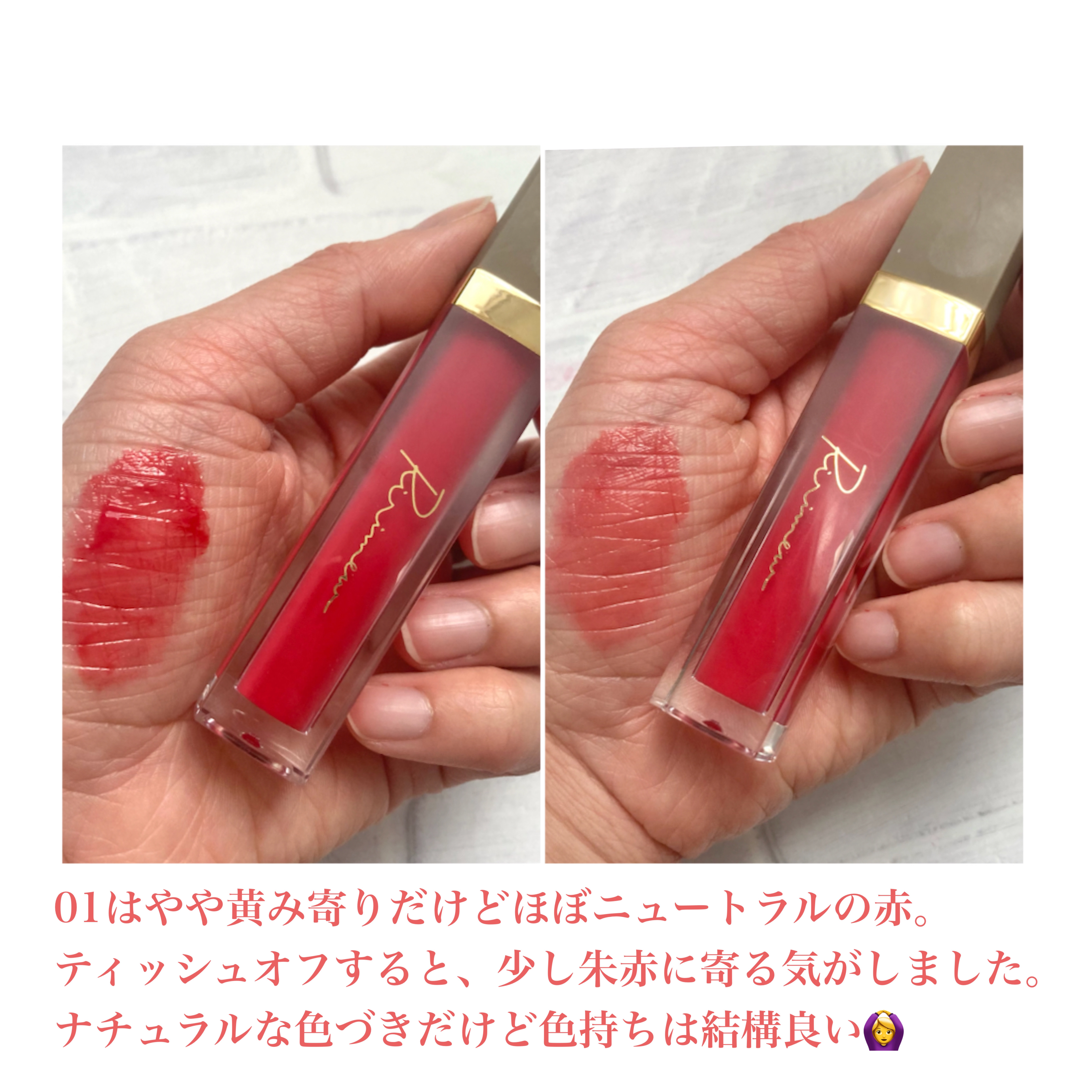 - <01 パピーレッド> 水、ダイマージリノール酸ダイマージリノレイル、ジフェニルジメチコン、ジフェニルシロキシフェニルトリメチコン、オクチルドデカノール、トリイソステアリン酸ポリグリセリルー2、ラウロイルグルタミン酸ジ(フィトステリル/オクチルドデシル)、ダイマージリノール酸(フィトステリル/イソステアリル/セチル/ステアリル/ベヘニル)、BG、水添ポリイソブテン、グリセリン、セテスー10、エタノール、セチルPEG/PPGー10/1ジメチコン、(アクリル酸ヒドロキシエチル/アクリロイルジメチルタウリンNa)コポリマー、イソヘキサデカン、フェノキシエタノール、メチルパラベン、ポリソルベート60、トコフェロール、エチルパラベン、デヒドロ酢酸Na、リン酸2Na、リン酸Na、シメチコン、シリカ、ハチミツ、スクワラン、ステアリン酸ソルビタン、ステアリン酸グリセリル、オレイン酸ポリグリセリルー10、セルロースガム、ヒアルロン酸Na、ローズマリー葉エキス、(+/ー)酸化鉄、酸化チタン、赤227、黄4、赤226、ポリアスパラギン酸Na、PVP、アクリレーツコポリマーアンモニウム、キサンタンガム、水酸化Al、EDTAー2Na <02 ピンクフォンデュ> 水、ダイマージリノール酸ダイマージリノレイル、ジフェニルジメチコン、ジフェニルシロキシフェニルトリメチコン、オクチルドデカノール、トリイソステアリン酸ポリグリセリルー2、ラウロイルグルタミン酸ジ(フィトステリル/オクチルドデシル)、ダイマージリノール酸(フィトステリル/イソステアリル/セチル/ステアリル/ベヘニル)、BG、水添ポリイソブテン、グリセリン、セテスー10、エタノール、セチルPEG/PPGー10/1ジメチコン、(アクリル酸ヒドロキシエチル/アクリロイルジメチルタウリンNa)コポリマー、イソヘキサデカン、フェノキシエタノール、メチルパラベン、ポリソルベート60、トコフェロール、エチルパラベン、デヒドロ酢酸Na、リン酸2Na、リン酸Na、シメチコン、シリカ、ハチミツ、スクワラン、ステアリン酸ソルビタン、ステアリン酸グリセリル、オレイン酸ポリグリセリルー10、セルロースガム、ヒアルロン酸Na、ローズマリー葉エキス、(+/ー)酸化鉄、酸化チタン、赤227、黄4、赤226、ポリアスパラギン酸Na、PVP、アクリレーツコポリマーアンモニウム、キサンタンガム、水酸化Al、EDTAー2Na <03 リッチグァバティー> 水、ダイマージリノール酸ダイマージリノレイル、ジフェニルジメチコン、グリセリン、ジフェニルシロキシフェニルトリメチコン、オクチルドデカノール、BG、トリイソステアリン酸ポリグリセリル-2、ダイマージリノール酸(フィトステリル/イソステアリル/セチル/ステアリル/ベヘニル)、セチルPEG/PPG-10/1ジメチコン、セテス-10、水添ポリイソブテン、ステアリン酸グリセリル(SE)、フェノキシエタノール、カルボマー、水酸化K、ステアロイルグルタミン酸Na、メチルパラベン、(アクリレーツ/アクリル酸アルキル(C10-30))クロスポリマー、トコフェロール、ポリソルベート80、ハチミツ、ヒアルロン酸Na、ローズマリー葉エキス、酸化チタン、酸化鉄、赤227、黄4、黄5、シリカ、水酸化Al、赤104(1)、青1 <04 オレンジアールグレイ> 水、ダイマージリノール酸ダイマージリノレイル、ジフェニルジメチコン、グリセリン、ジフェニルシロキシフェニルトリメチコン、オクチルドデカノール、BG、トリイソステアリン酸ポリグリセリル-2、ダイマージリノール酸(フィトステリル/イソステアリル/セチル/ステアリル/ベヘニル)、セチルPEG/PPG-10/1ジメチコン、セテス-10、水添ポリイソブテン、ステアリン酸グリセリル(SE)、フェノキシエタノール、カルボマー、水酸化K、ステアロイルグルタミン酸Na、メチルパラベン、(アクリレーツ/アクリル酸アルキル(C10-30))クロスポリマー、トコフェロール、ハチミツ、ヒアルロン酸Na、ローズマリー葉エキス、酸化鉄、黄4、赤227、黄5、シリカ <05 コンポートピンク> 水、ジフェニルジメチコン、ダイマージリノール酸ダイマージリノレイル、グリセリン、ジフェニルシロキシフェニルトリメチコン、オクチルドデカノール、BG、トリイソステアリン酸ポリグリセリル-2、ダイマージリノール酸(フィトステリル/イソステアリル/セチル/ステアリル/ベヘニル)、水添ポリイソブテン、セテス-10、セチルPEG/PPG-10/1ジメチコン、ステアリン酸グリセリル(SE)、フェノキシエタノール、カルボマー、水酸化K、ステアロイルグルタミン酸Na、(アクリレーツ/アクリル酸アルキル(C10-30))クロスポリマー、メチルパラベン、トコフェロール、ポリソルベート80、ハチミツ、ヒアルロン酸Na、ローズマリー葉エキス、(+/-)酸化チタン、酸化鉄、赤227、赤104(1)、黄4、黄5、シリカ、水酸化Al、青1 <06 ピンクマーガレット> 水、ジフェニルジメチコン、ダイマージリノール酸ダイマージリノレイル、グリセリン、ジフェニルシロキシフェニルトリメチコン、オクチルドデカノール、BG、トリイソステアリン酸ポリグリセリル-2、ダイマージリノール酸(フィトステリル/イソス