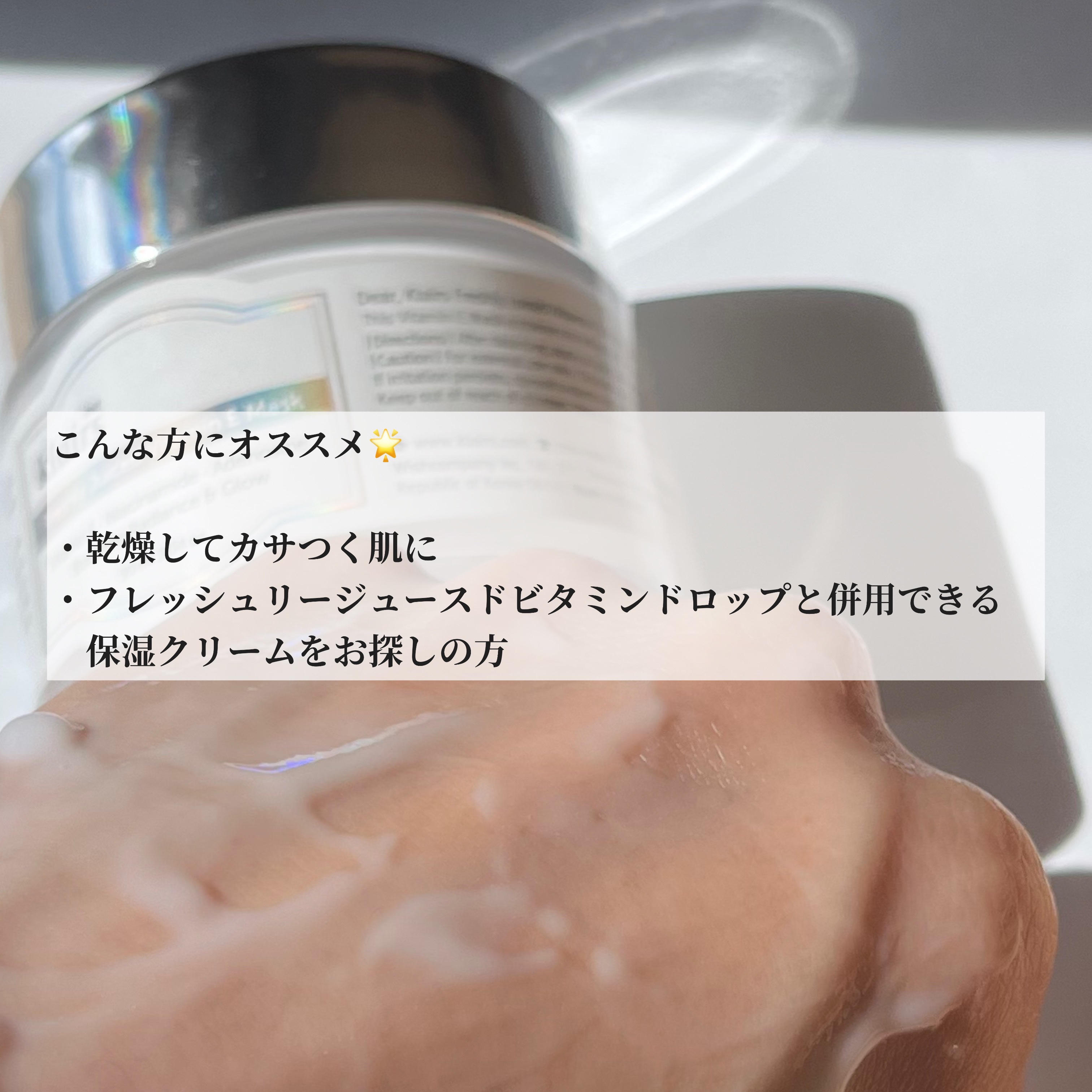 ビタミンドロップ現品にビタミンEマスクのミニサイズが付いた“お手頃価格でお試しできるセット”だよ🤍🫧 フレッシュリージュースドビタミンドロップはオイルっぽい厚みのあるテクスチャーで、塗った時は浸透した証にほんのり暖かく🔥 フレッシュリージュースドビタミンEマスクはまるで杏仁豆腐!ぷるんっとしたテクスチャーで見た目も香りも杏仁豆腐で楽しい使用感🤤