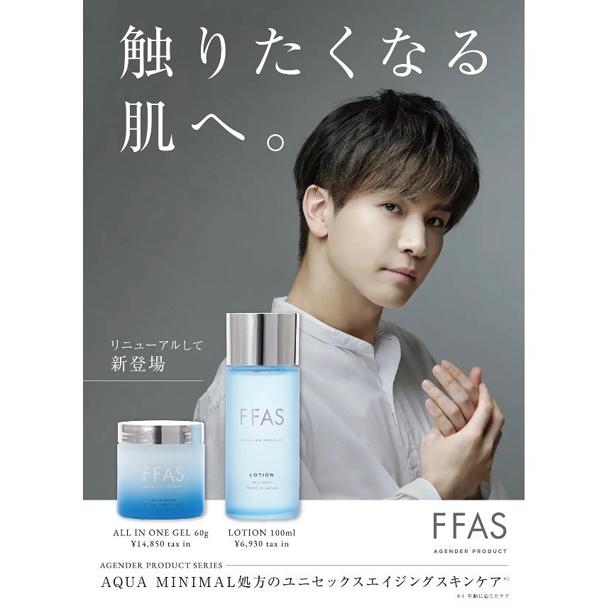 FFAS MOIST LOTION (リニューアル) 透明のジェル状のローション。 ローションにしてはかなりしっかりめなテクスチャー。 お顔になじませるとしっとりなのにべたつきません。 FFAS SERAM 水をコラーゲン水で最大限 (74.854% ) 代替した 濃密美容液。 遺伝子や細胞レベルの厳選成分を多数 配合。 最先端 高級美容液 。 FFAS ALL IN ONE GEL(リニューアル) 化粧水 、美容液 、乳液、 クリームが1つに。 忙しい方や 男性も ワンステップなので使いやすいです。
