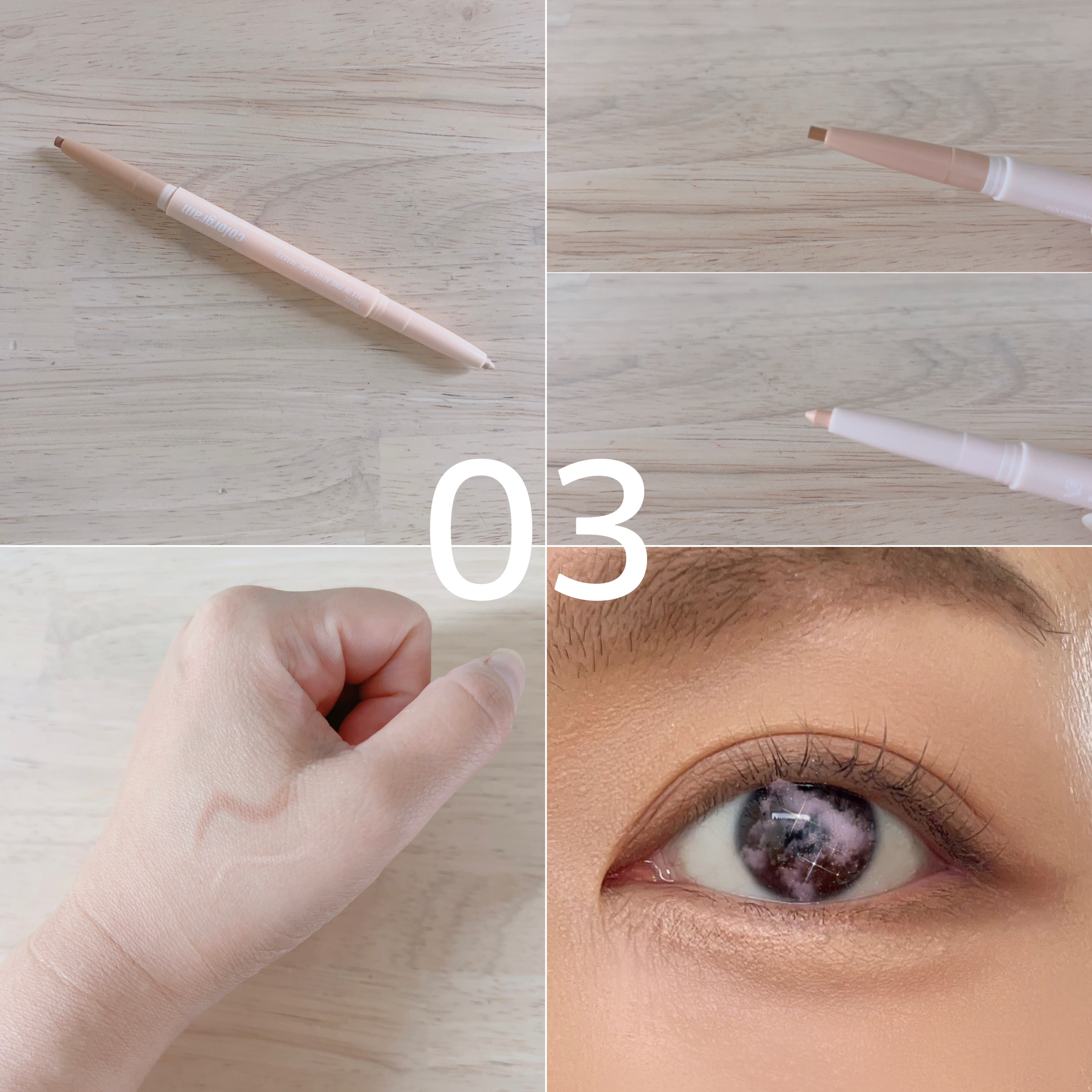 - 1.2色で簡単 涙袋完成 陰影ライナーで涙袋の影をサッと描いて 反対側のカラーシャドウで涙袋全体を埋めるだけで、 生まれつきの涙袋*のように ぷっくり自然な仕上がりに! 2. 粉飛びせずなめらかフィット 1回でスムーズに描ける柔らかい密着テクスチャー ムラなくヨレにくい、簡単にブレンディングできる クリームフォーミュラ 3. 描きやすい細芯タイプ 狭くて細い部位にも繊細なタッチでメイクが完成! 涙袋メイクに特化した #超繊細サイズ *メイクアップ効果による