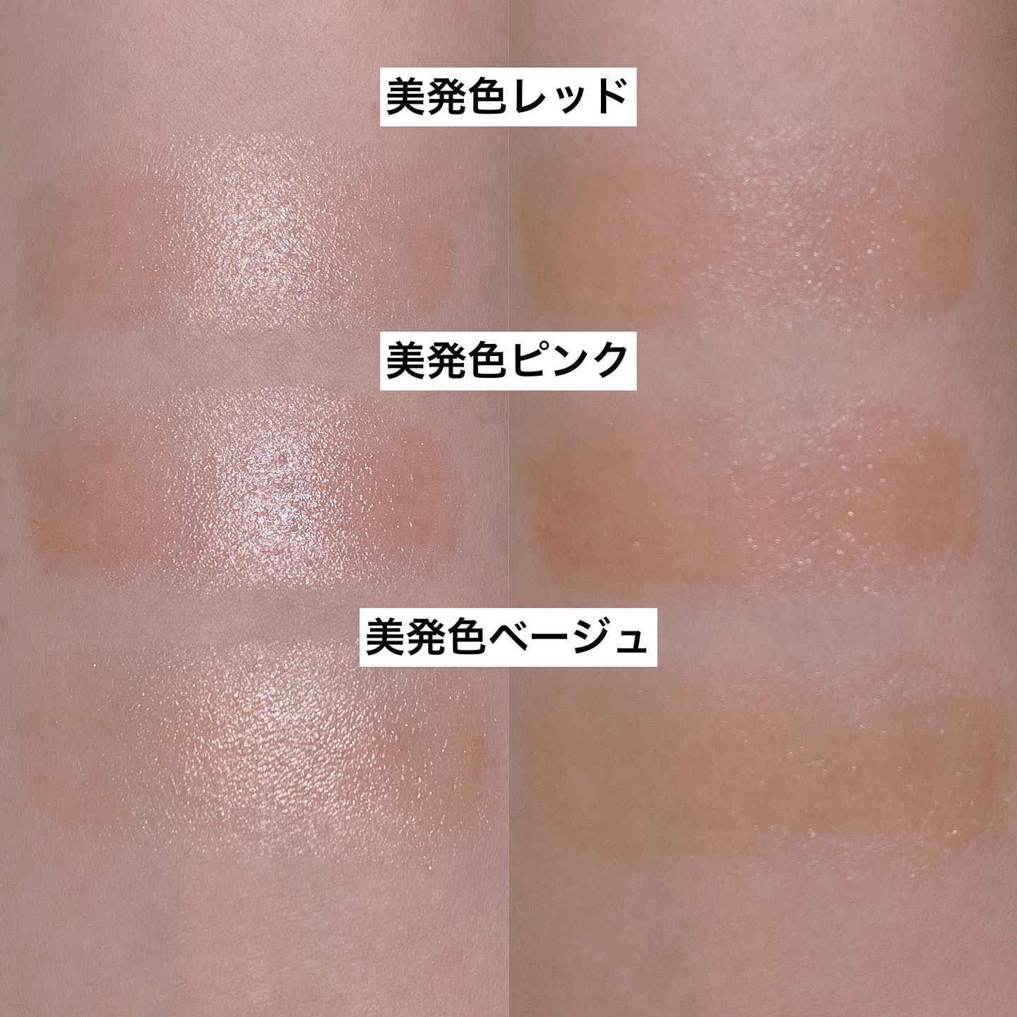 - <美発色レッド> ミネラルオイル、ワセリン、セレシン、水添ポリイソブテン、マイクロクリスタリンワックス、ホホバ種子油、オクチルドデカノール、ラウロイルグルタミン酸ジ(フィトステリル/オクチルドデシル)、セチルPGヒドロキシエチルパルミタミド、スクワラン、BHT、グリチルレチン酸ステアリル、(+/-)マイカ、酸化チタン、ホウケイ酸(Ca/Al)、酸化鉄、シリカ、酸化スズ <美発色ピンク> ミネラルオイル、ワセリン、セレシン、水添ポリイソブテン、マイクロクリスタリンワックス、ホホバ種子油、オクチルドデカノール、ラウロイルグルタミン酸ジ(フィトステリル/オクチルドデシル)、セチルPGヒドロキシエチルパルミタミド、スクワラン、BHT、グリチルレチン酸ステアリル、(+/-)マイカ、酸化チタン、ホウケイ酸(Ca/Al)、酸化鉄、シリカ、酸化スズ <美発色ベージュ> ミネラルオイル、ワセリン、セレシン、水添ポリイソブテン、マイクロクリスタリンワックス、ホホバ種子油、オクチルドデカノール、ラウロイルグルタミン酸ジ(フィトステリル/オクチルドデシル)、セチルPGヒドロキシエチルパルミタミド、スクワラン、BHT、グリチルレチン酸ステアリル、(+/-)マイカ、酸化チタン、ホウケイ酸(Ca/Al)、酸化鉄、シリカ、酸化スズ <美発色ボルドー> ミネラルオイル、ワセリン、セレシン、水添ポリイソブテン、マイクロクリスタリンワックス、ホホバ種子油、オクチルドデカノール、ラウロイルグルタミン酸ジ(フィトステリル/オクチルドデシル)、セチルPGヒドロキシエチルパルミタミド、スクワラン、BHT、グリチルレチン酸ステアリル、(+/-)マイカ、酸化鉄、酸化チタン、シリカ