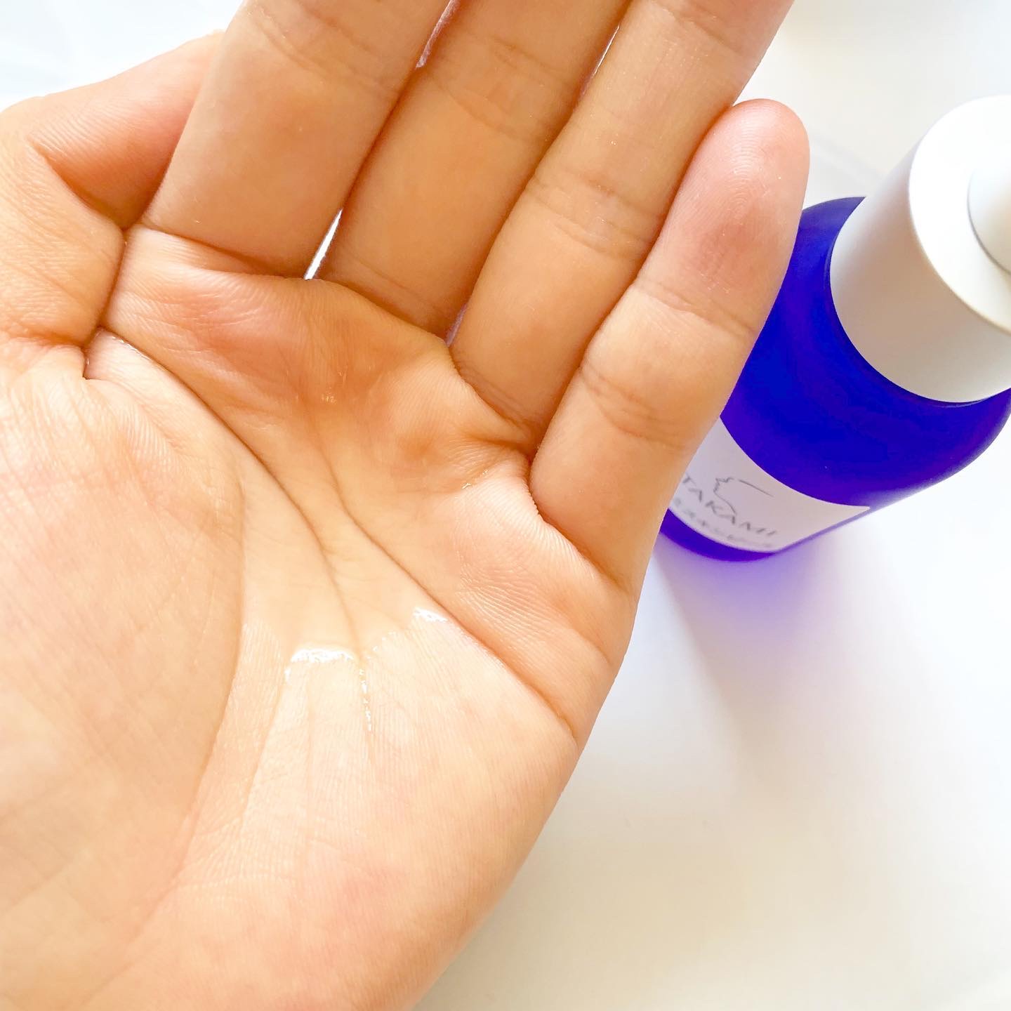 青い瓶が素敵。 毎日生まれ変わるお肌のリズムに寄り添うスキンケア。 タカミ独自の剥がさない角質美容水。 薄い肌表面を剥がして一時的な結果を出すスキンケアとは違います。 まるで水のようなテクスチャー。サラサラで本当に水を塗ってるかのよう。