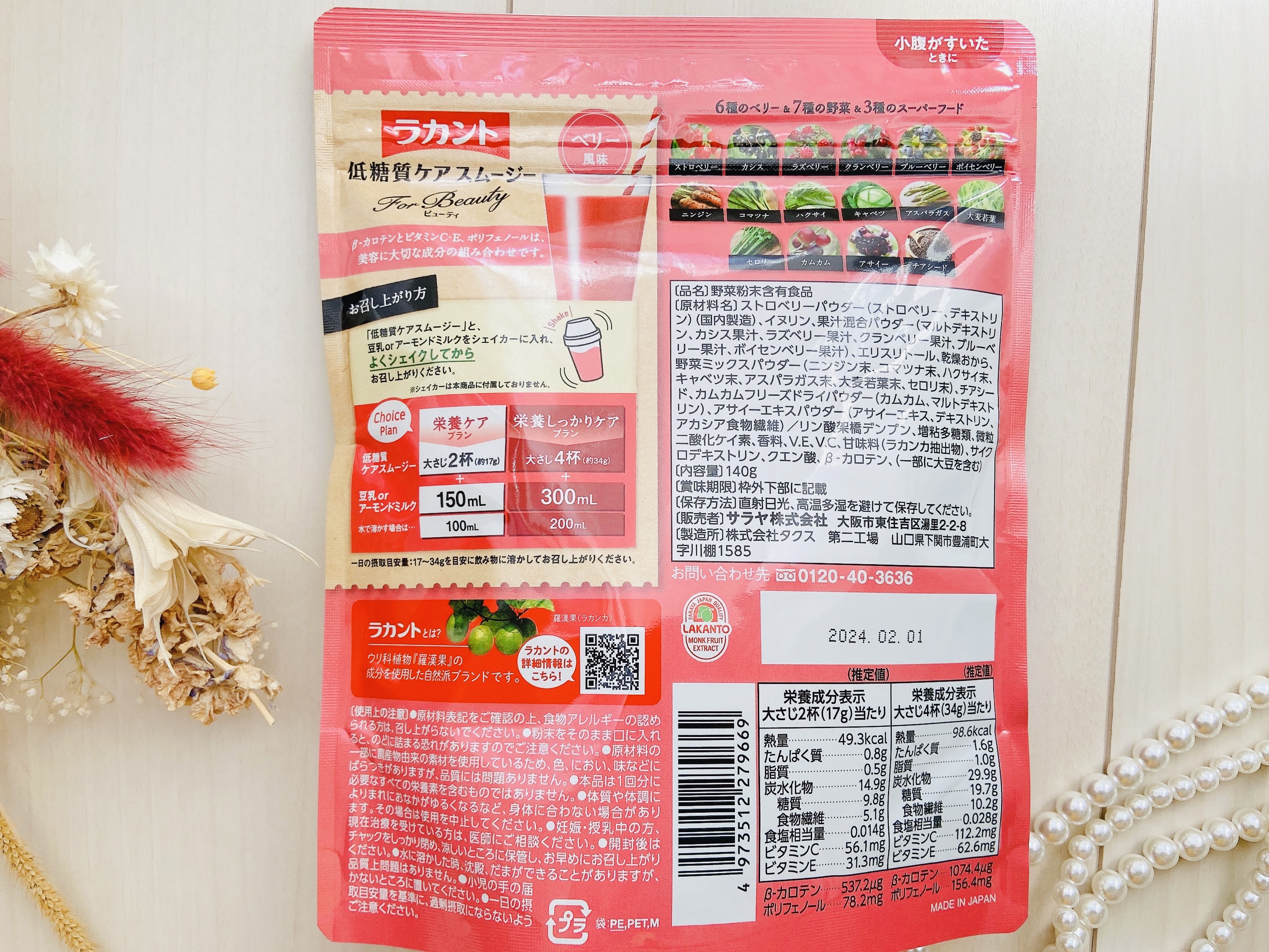 ラカントで有名なサラヤさんのスムージーです。私はリリースのマスカット風味を使用です🍇 美味しいのに、食物繊維、乳酸菌、ビフィズス菌が摂れるのは凄く魅力的✨ 忙しい朝や栄養が偏っていると感じている時に、サッと飲めて栄養補給出来るの嬉しい💕