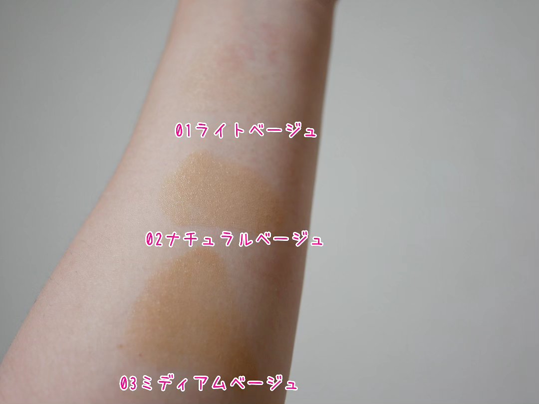 - <01 ライトベージュ> 水、ジフェニルシロキシフェニルトリメチコン、トリメチルシロキシケイ酸、メトキシケイヒ酸エチルヘキシル、ジメチコン、サリチル酸エチルヘキシル、グリセリン、BG、ジ(カプリル/カプリン酸)BG、メチルトリメチコン、ラウリルPEG-10トリス(トリメチルシロキシ)シリルエチルジメチコン、セチルPEG/PPG-10/1ジメチコン、ジステアルジモニウムヘクトライト、窒化ホウ素、硫酸Mg、オリーブ果実油、トコフェロール、加水分解コラーゲン、1,2-ヘキサンジオール、(ベヘン酸/エイコサン二酸)グリセリル、アルミナ、オレフィン(C20-24)、カプリリルグリコール、キサンタンガム、シリル化シリカ、ジメチコンクロスポリマー、スクワラン、セスキオレイン酸ソルビタン、テトラ(ジ-t-ブチルヒドロキシヒドロケイヒ酸)ペンタエリスリチル、トリエトキシカプリリルシラン、合成フルオロフロゴパイト、水酸化Al、マイカ、酸化チタン、酸化鉄 <限定キット 01 ライトベージュ> 水、ジフェニルシロキシフェニルトリメチコン、トリメチルシロキシケイ酸、メトキシケイヒ酸エチルヘキシル、ジメチコン、サリチル酸エチルヘキシル、グリセリン、BG、ジ(カプリル/カプリン酸)BG、メチルトリメチコン、ラウリルPEG-10トリス(トリメチルシロキシ)シリルエチルジメチコン、セチルPEG/PPG-10/1ジメチコン、ジステアルジモニウムヘクトライト、窒化ホウ素、硫酸Mg、オリーブ果実油、トコフェロール、加水分解コラーゲン、1,2-ヘキサンジオール、(ベヘン酸/エイコサン二酸)グリセリル、アルミナ、オレフィン(C20-24)、カプリリルグリコール、キサンタンガム、シリル化シリカ、ジメチコンクロスポリマー、スクワラン、セスキオレイン酸ソルビタン、テトラ(ジ-t-ブチルヒドロキシヒドロケイヒ酸)ペンタエリスリチル、トリエトキシカプリリルシラン、合成フルオロフロゴパイト、水酸化Al、マイカ、酸化チタン、酸化鉄 <02 ナチュラルベージュ> 水、ジフェニルシロキシフェニルトリメチコン、トリメチルシロキシケイ酸、メトキシケイヒ酸エチルヘキシル、ジメチコン、サリチル酸エチルヘキシル、グリセリン、BG、ジ(カプリル/カプリン酸)BG、メチルトリメチコン、ラウリルPEG-10トリス(トリメチルシロキシ)シリルエチルジメチコン、セチルPEG/PPG-10/1ジメチコン、ジステアルジモニウムヘクトライト、窒化ホウ素、硫酸Mg、オリーブ果実油、トコフェロール、加水分解コラーゲン、1,2-ヘキサンジオール、(ベヘン酸/エイコサン二酸)グリセリル、アルミナ、オレフィン(C20-24)、カプリリルグリコール、キサンタンガム、シリル化シリカ、ジメチコンクロスポリマー、スクワラン、セスキオレイン酸ソルビタン、テトラ(ジ-t-ブチルヒドロキシヒドロケイヒ酸)ペンタエリスリチル、トリエトキシカプリリルシラン、合成フルオロフロゴパイト、水酸化Al、マイカ、酸化チタン、酸化鉄 <限定キット 02 ナチュラルベージュ> 水、ジフェニルシロキシフェニルトリメチコン、トリメチルシロキシケイ酸、メトキシケイヒ酸エチルヘキシル、ジメチコン、サリチル酸エチルヘキシル、グリセリン、BG、ジ(カプリル/カプリン酸)BG、メチルトリメチコン、ラウリルPEG-10トリス(トリメチルシロキシ)シリルエチルジメチコン、セチルPEG/PPG-10/1ジメチコン、ジステアルジモニウムヘクトライト、窒化ホウ素、硫酸Mg、オリーブ果実油、トコフェロール、加水分解コラーゲン、1,2-ヘキサンジオール、(ベヘン酸/エイコサン二酸)グリセリル、アルミナ、オレフィン(C20-24)、カプリリルグリコール、キサンタンガム、シリル化シリカ、ジメチコンクロスポリマー、スクワラン、セスキオレイン酸ソルビタン、テトラ(ジ-t-ブチルヒドロキシヒドロケイヒ酸)ペンタエリスリチル、トリエトキシカプリリルシラン、合成フルオロフロゴパイト、水酸化Al、マイカ、酸化チタン、酸化鉄 <03 ミディアムベージュ> 水、ジフェニルシロキシフェニルトリメチコン、トリメチルシロキシケイ酸、メトキシケイヒ酸エチルヘキシル、ジメチコン、サリチル酸エチルヘキシル、グリセリン、BG、ジ(カプリル/カプリン酸)BG、メチルトリメチコン、ラウリルPEG-10トリス(トリメチルシロキシ)シリルエチルジメチコン、セチルPEG/PPG-10/1ジメチコン、ジステアルジモニウムヘクトライト、窒化ホウ素、硫酸Mg、オリーブ果実油、トコフェロール、加水分解コラーゲン、1,2-ヘキサンジオール、(ベヘン酸/エイコサン二酸)グリセリル、アルミナ、オレフィン(C20-24)、カプリリルグリコール、キサンタンガム、シリル化シリカ、ジメチコンクロスポリマー、スクワラン、セスキオレイン酸ソルビタン、テトラ(ジ-t-ブチルヒドロキシヒドロケイヒ酸)ペンタエリスリチル、トリエトキシカプリリルシラン、合成フルオロフロゴパイト、水酸化Al、マイカ、酸化チタン、酸化鉄