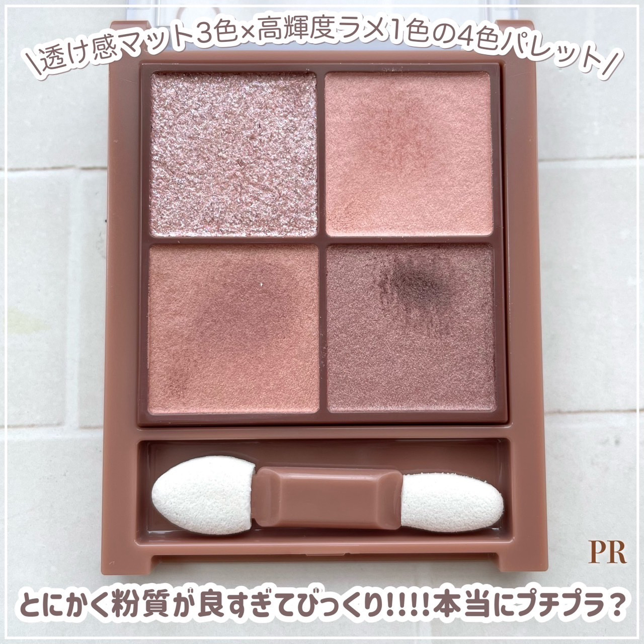 - 透け感マット×濃厚ブラウンの4色アイシャドウ。 しっかり目元を引き締めるビターなブラウンカラー。 透け感のあるブラウンを重ねて、自然な陰影のある目元へ。 ふんわり柔らかなパウダーなので、スルスル伸びてまぶたにピタッと密着。 保湿成分(スクワラン、ホホバ種子油)配合。