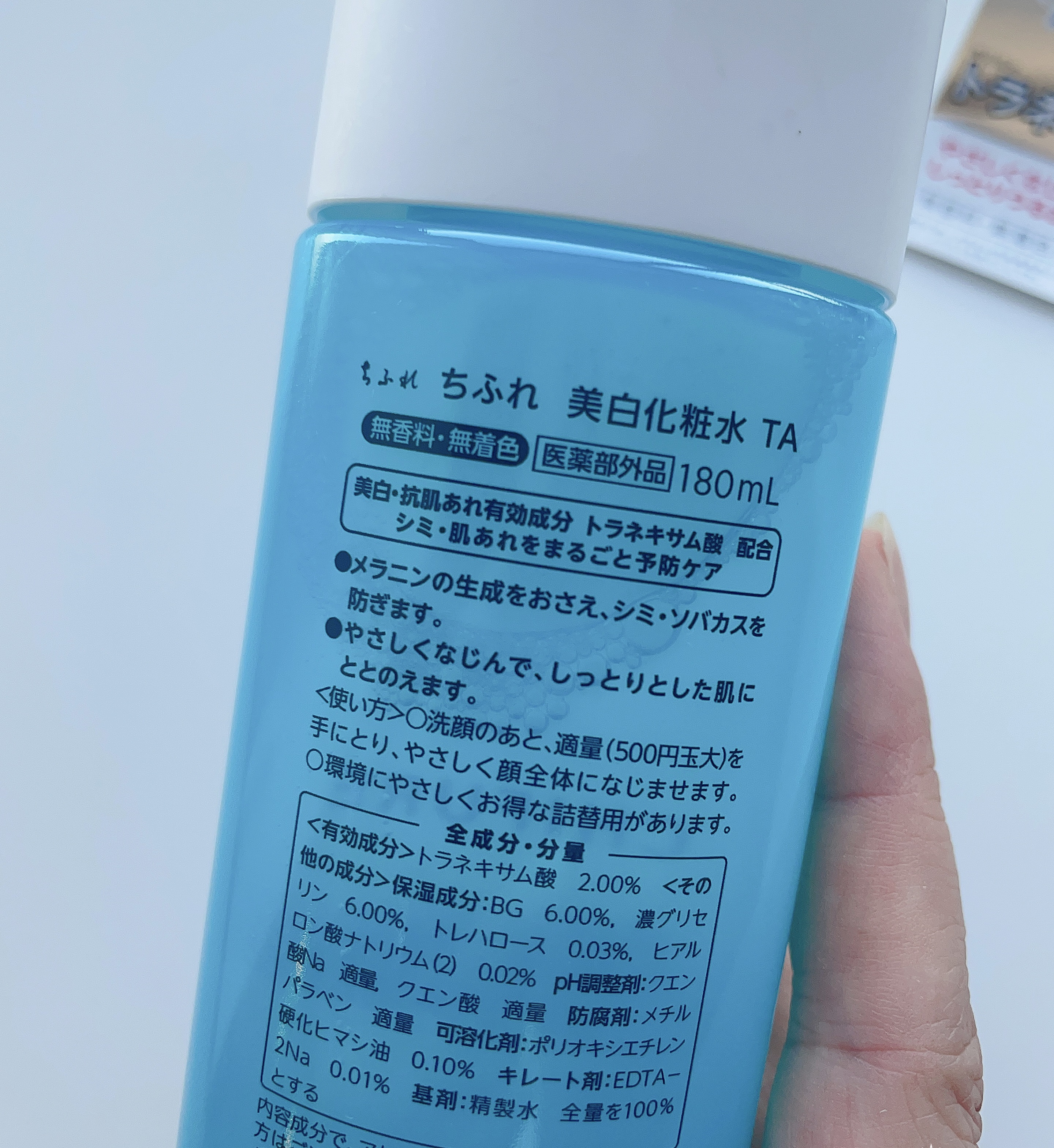 - <本品> 有効成分 トラネキサム酸 その他の成分 BG、濃グリセリン、トレハロース、ヒアルロン酸ナトリウム(2)、クエン酸Na、クエン酸、メチルパラベン、ポリオキシエチレン硬化ヒマシ油、EDTA-2Na、精製水 <詰替用> 有効成分 トラネキサム酸 その他の成分 BG、濃グリセリン、トレハロース、ヒアルロン酸ナトリウム(2)、クエン酸Na、クエン酸、メチルパラベン、ポリオキシエチレン硬化ヒマシ油、EDTA-2Na、精製水