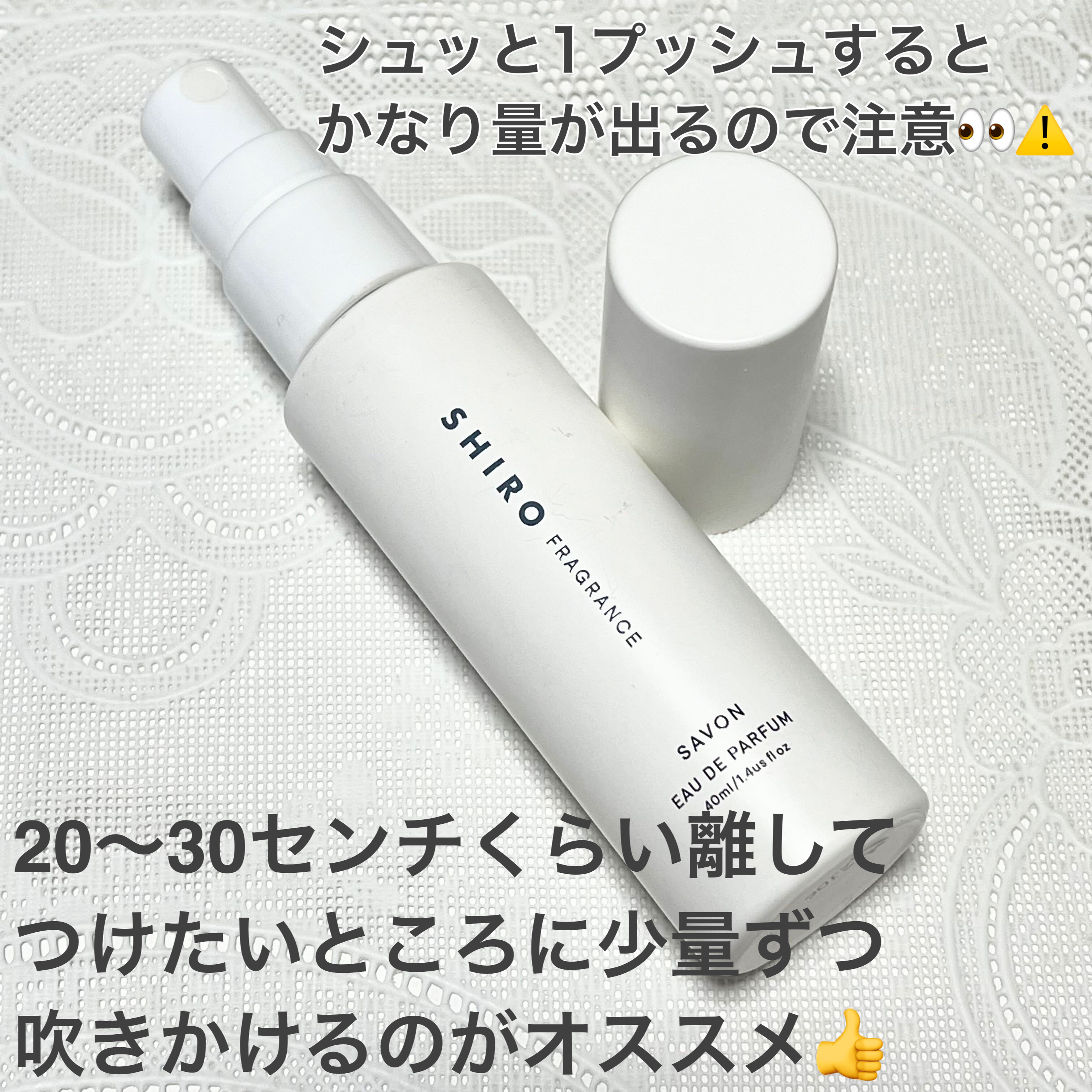 - 香りが最大限に楽しめるオードパルファン 石けんのようにやさしく、清潔に香るサボン。 時間とともに変わる香りをお楽しみください。気分転換にもお使いいただけます。 *2022/9/1 リニューアル発売 一部の香料の変更