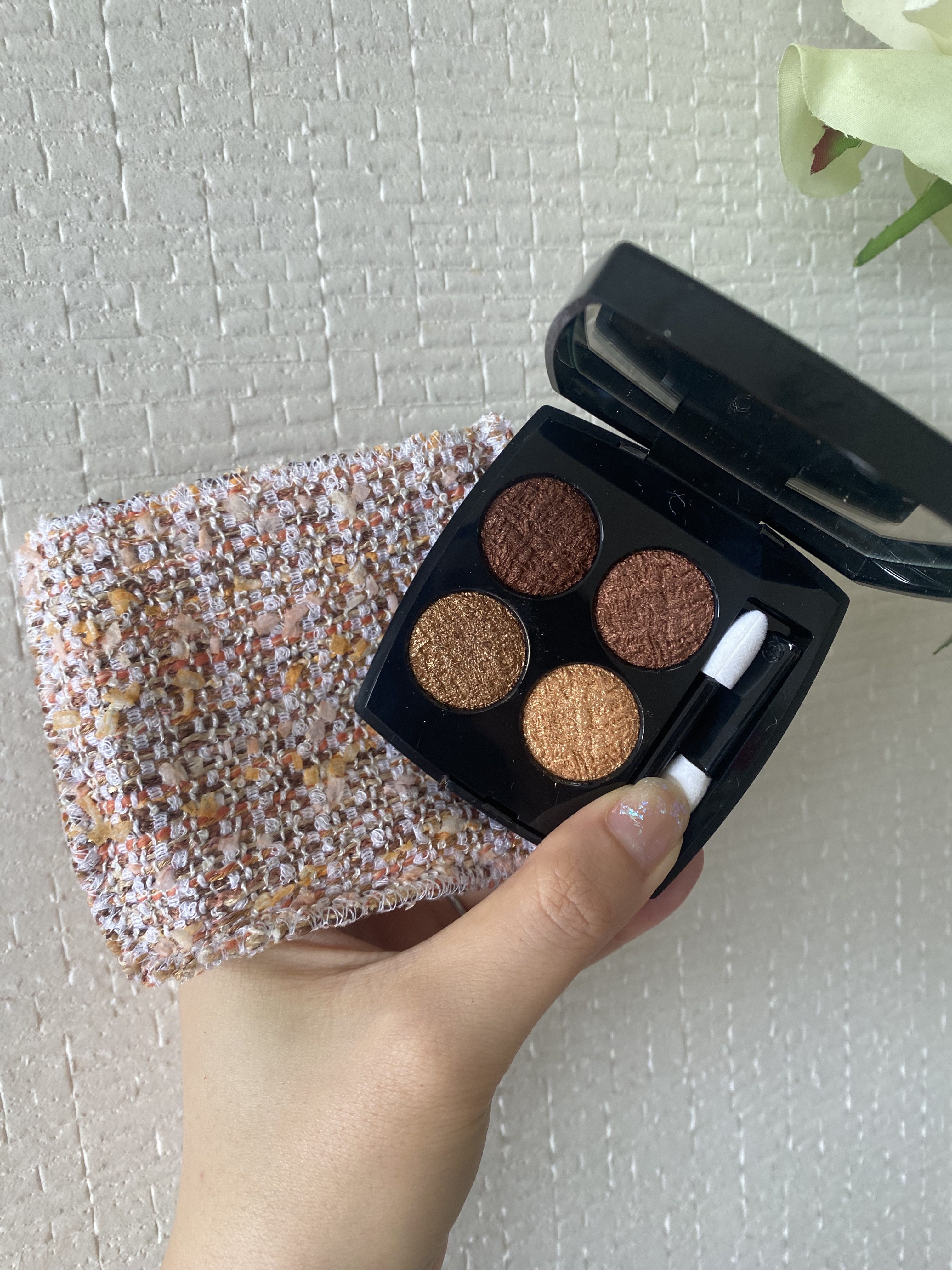 CHANELレキャトルオンブルツイード 03ツイードフォーヴツイードやっぱりかわいい😁たまに使いたくなるアイシャドウ❤️チークはジュコントゥラスト370 エレガンス久々ひっぱりだしたエレガンス✨チラチララメがかわいい❤️リップはルージュアリュ...