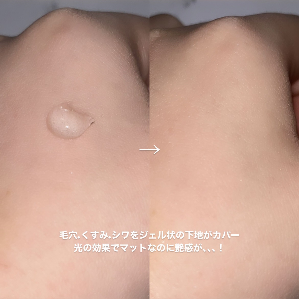ゴールドのラメが可愛いです♡ ぷるんっとしたテクスチャーです。お肌に乗せると、スーーーッッっと溶け込むようにお肌に馴染んで、お肌をサラサラにしてくれます♪ お肌がサラサラになる お肌の凹凸をカバーしてくれる ⚫︎お肌がサラツヤマットな不思議な感覚 見た目も可愛いのでドレッサーにあるだけで気分も上がります♡