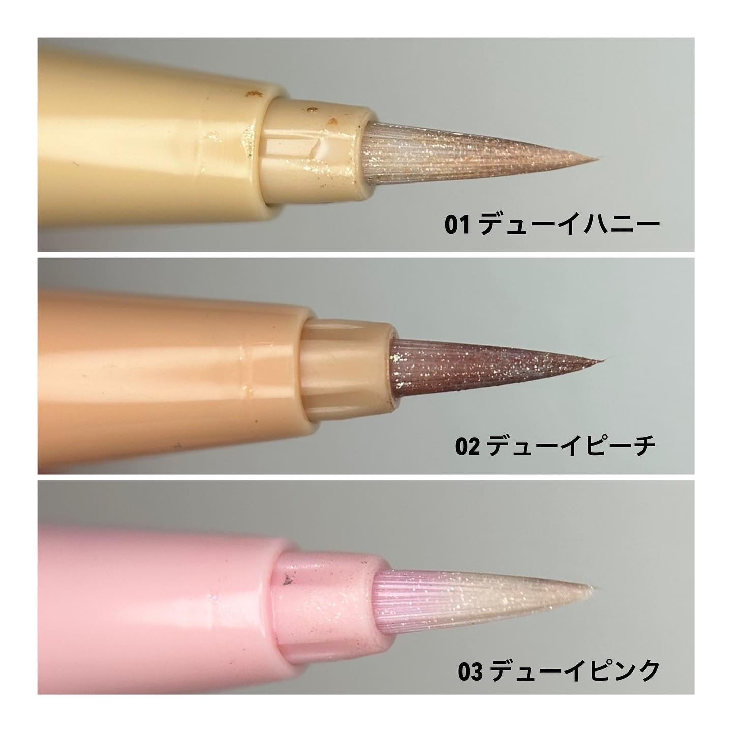 - <01 デューイハニー> 水、(スチレン/アクリレーツ)コポリマー、PG、BG、ホウケイ酸(Ca/Al)、銀、酸化チタン、PEG-40水添ヒマシ油、ペンチレングリコール、1,2-ヘキサンジオール、黄色酸化鉄、フェノキシエタノール、赤酸化鉄、クエン酸、ベヘネス-30、水酸化Al、カプリリルグリコール、酸化スズ、黒酸化鉄、DPG、トリエトキシカプリリルシラン、エチルヘキシルグリセリン、赤202 <02 デューイピーチ> 水、(スチレン/アクリレーツ)コポリマー、PG、BG、ホウケイ酸(Ca/Al)、銀、酸化チタン、PEG-40水添ヒマシ油、ペンチレングリコール、1,2-ヘキサンジオール、フェノキシエタノール、赤酸化鉄、黄色酸化鉄、クエン酸、ベヘネス-30、DPG、酸化スズ、水酸化Al、カプリリルグリコール、赤202、トリエトキシカプリリルシラン、黒酸化鉄、エチルヘキシルグリセリン、ポリアクリル酸Na、ステアレス-20 <03 デューイピンク> 水、(スチレン/アクリレーツ)コポリマー、PG、BG、ホウケイ酸(Ca/Al)、PEG-40水添ヒマシ油、ペンチレングリコール、銀、1,2-ヘキサンジオール、フェノキシエタノール、酸化チタン、クエン酸、赤202、DPG、エチルヘキシルグリセリン、酸化スズ、ベヘネス-30、カプリリルグリコール、水酸化Al、トリエトキシカプリリルシラン、ポリアクリル酸Na、EDTA-2Na