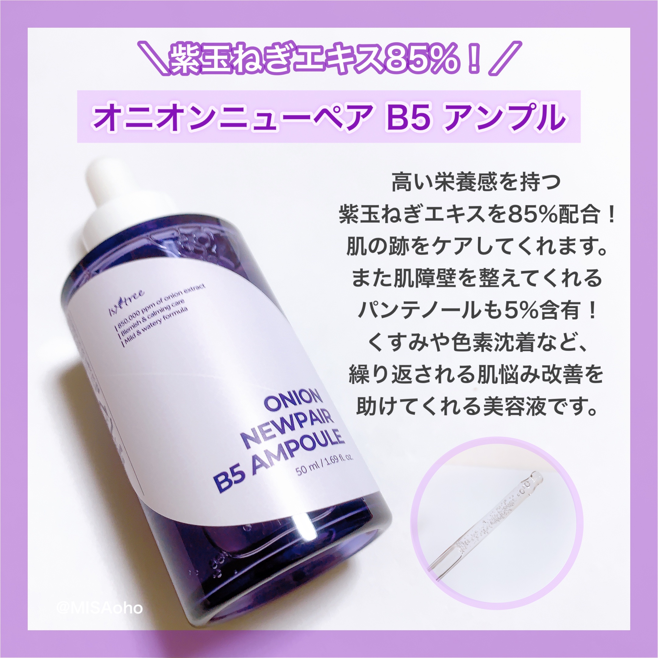 紫玉ねぎエキス85%、パンテノール5% フェルラ酸、カフェイン、トラネキサム酸配合 少しとろみのあるテクスチャーだけどサラッとのびてベタつき感も気にならず!肌トラブルが多い私も安心して使えるアンプル✨ コットン100%刺激のないやわらかいパッド 7種類の跡ケア成分