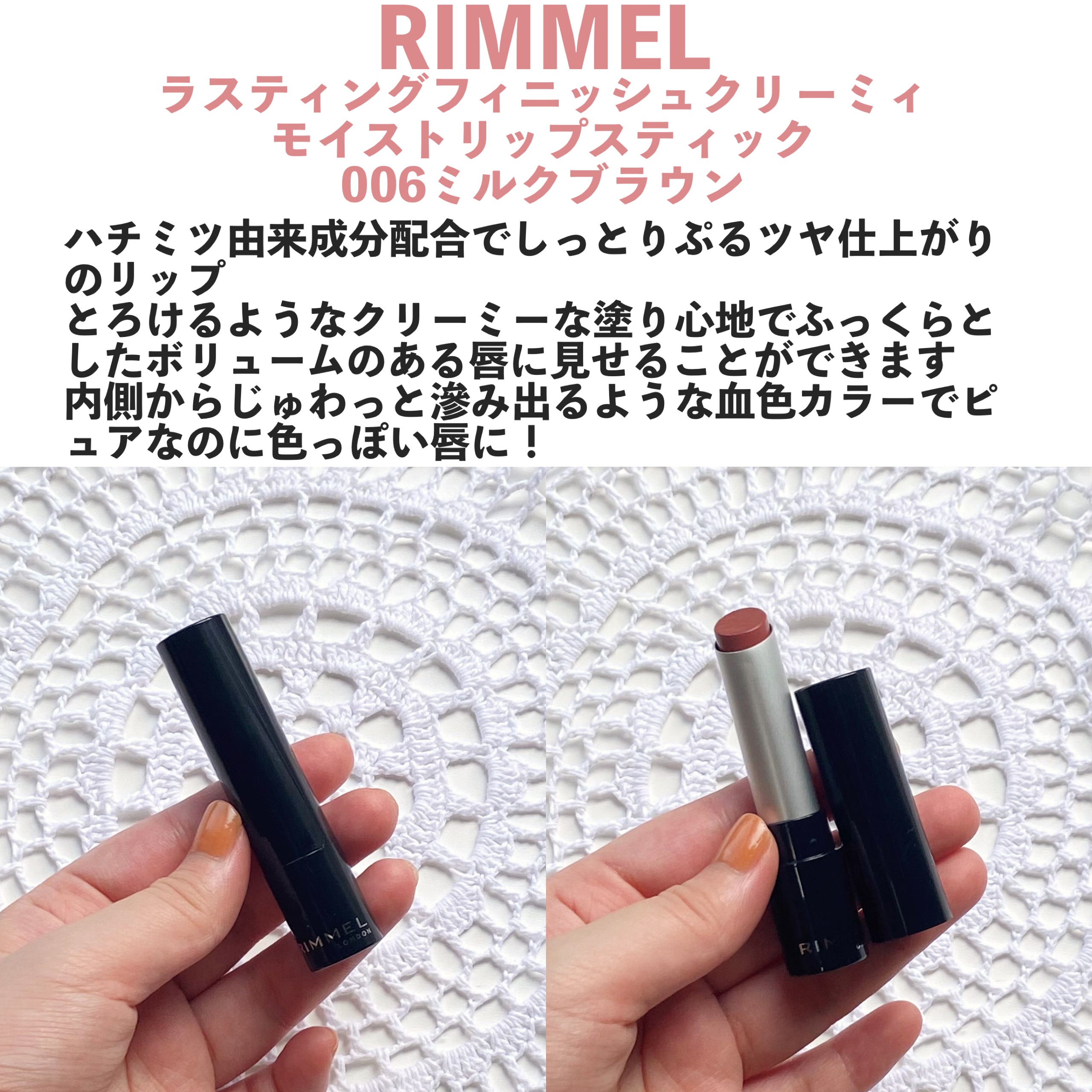 【ブルベさんも使いやすい!ブラウンリップ】リンメルラスティングフィニッシュクリーミィモイストリップスティック006 ミルクブラウンブルベも使える貴重なシアー感のあるブラウンリップ💄塗り心地もとてもなめらか♡色持ちは普通ですが、乾燥しにくくてお...