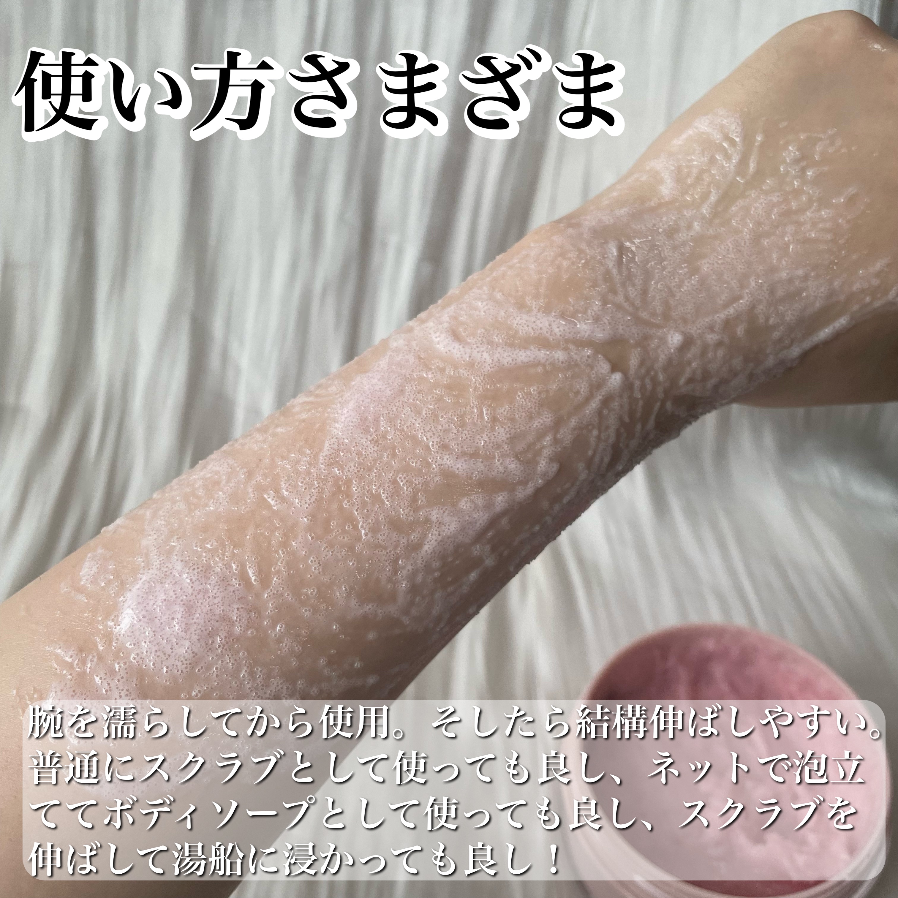 - 美容をもっとカジュアルに“AGARISM”とカワイイの欲望を知り尽くした雑誌sweetとのコラボ商品!女性のボディを魅力的にする重要なパーツ「お尻」。古い角質による黒ずみやザラツキ・乾燥ニキビ*などをケア。角質が気になるところにはスクラブとして、気になるデリケートゾーンは泡立てて全身ボディソープとしてOK。バスソルトとしても使える3WAYボディスクラブです。香りもやみつきになるフェロモンな香りにうっとりします! *洗浄によりニキビを防ぐ