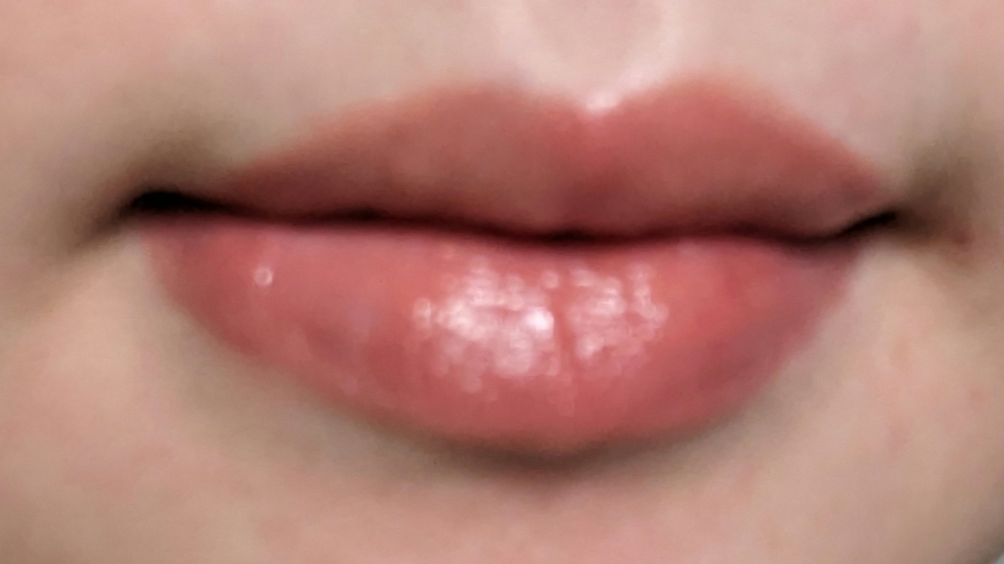チャイティーピンクはくすみのあるヌードピンクで、ライトありだとほんのりくすみのあるヌードなピンクカラーで、素の唇をしっかり明るく可愛くしてくれます! みずみずしさを感じるツヤ感とグロスでしかだせないぽってり感が両立してるんです!!感動! 歯にめちゃくちゃ付きます!ここめちゃくちゃ辛い…