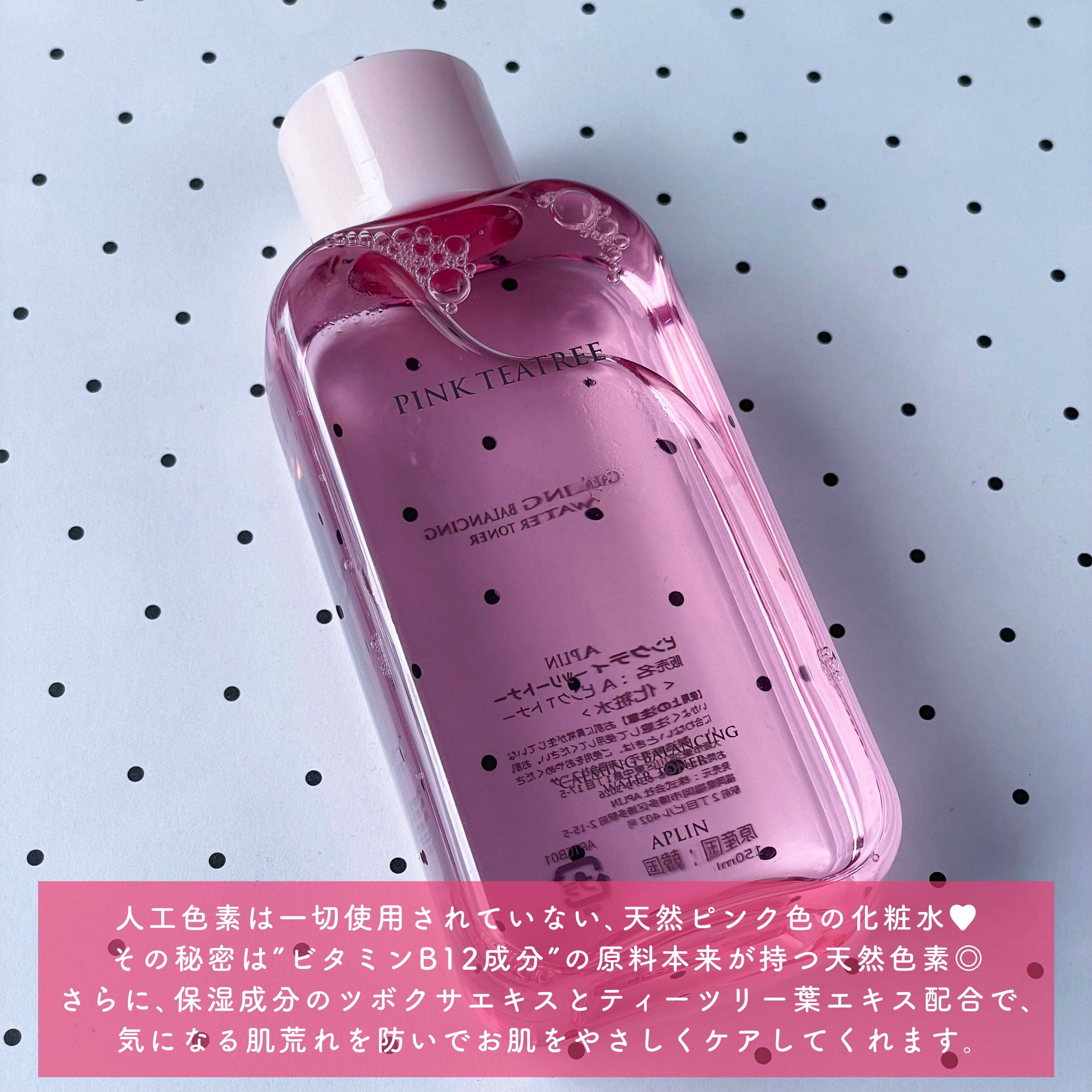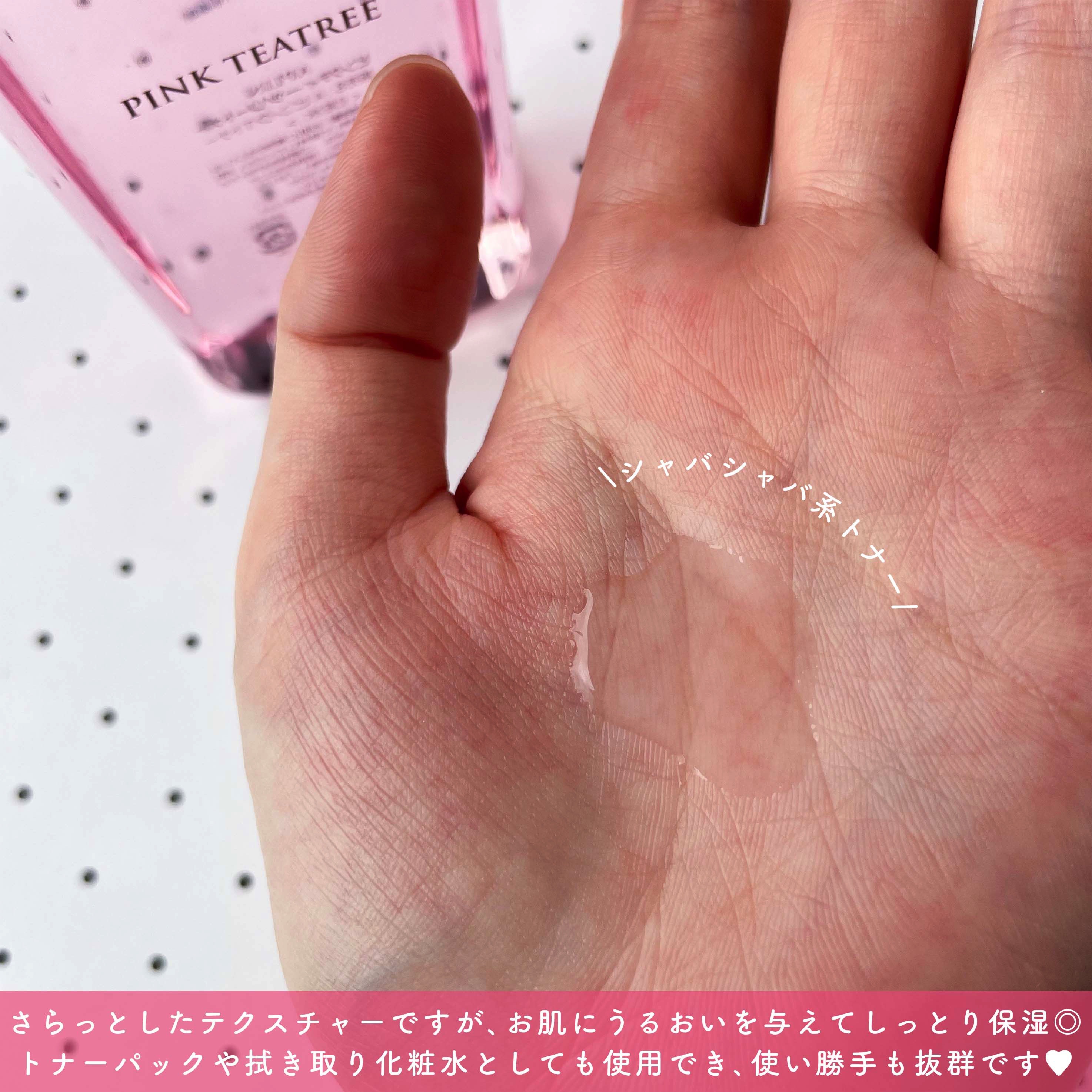 ティーツリーや、シカエキスを配合でニキビ、肌荒れ悩みをケアしてくれるトナー🩷 ピンク色は自然成分「ビタミンB12」本来の色だそう✨ サラサラテクスチャーで、さっぱりした使い心地✨