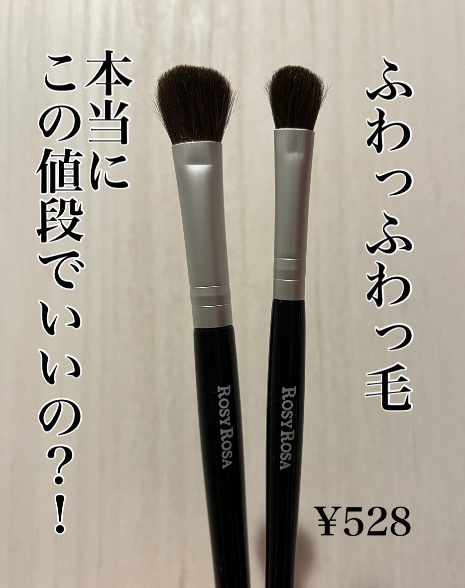 ロージーローザアイシャドウブラシセット ¥528天然毛100%のパウダーアイシャドウ専用ブラシ。大きいブラシはまぶた全体やフワッとぼかす用、小さいブラシはまぶたのキワや締め色にオススメ。チクチクせず、肌辺りが良かったです。アイシャドウをふんわ...