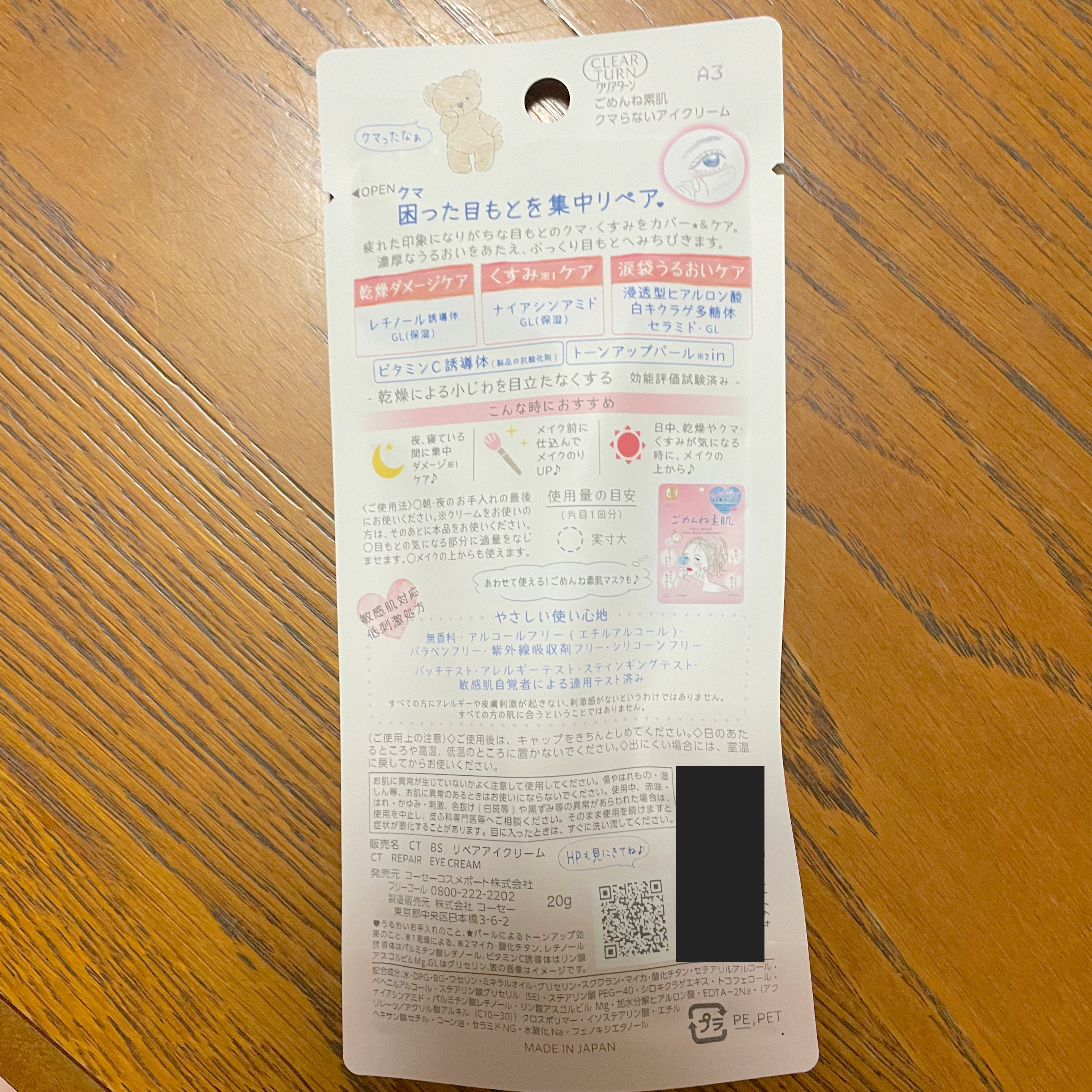 商品詳細情報クリアターン ごめんね素肌 クマらないアイクリーム