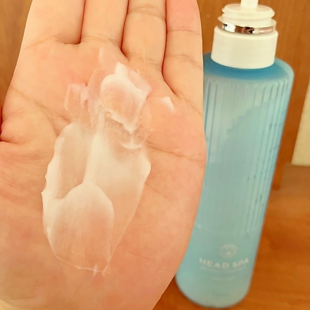 ヘッドスパ帰りのような仕上がりを提供するプレミアムなh&sのシリーズ。 スパリセット処方が地肌と髪のすみずみまで浸透し、毛穴の奥の皮脂や汚れをすっきりやさしく洗い流してくれるそう。 爽やかな水色のボトルが可愛い🩵 シャンプーはびよーんととろみのあるテクスチャー。