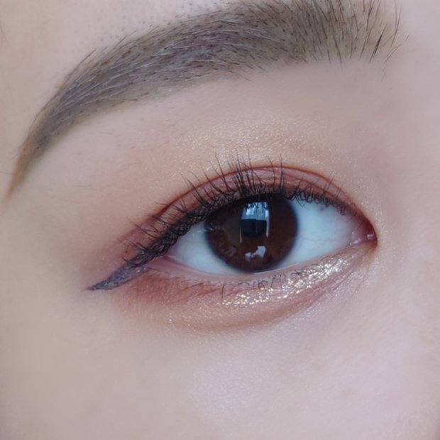 細かいラメが引けるライナーになります。細めの筆でのせやすいのもお気に入りポイント。 グリッターほどやりすぎ感がなく、何も塗っていない時より自然な存在感が出るので、 美容液成分が配合されているようです。確かに一日中つけていても乾燥は感じにくかったです。
