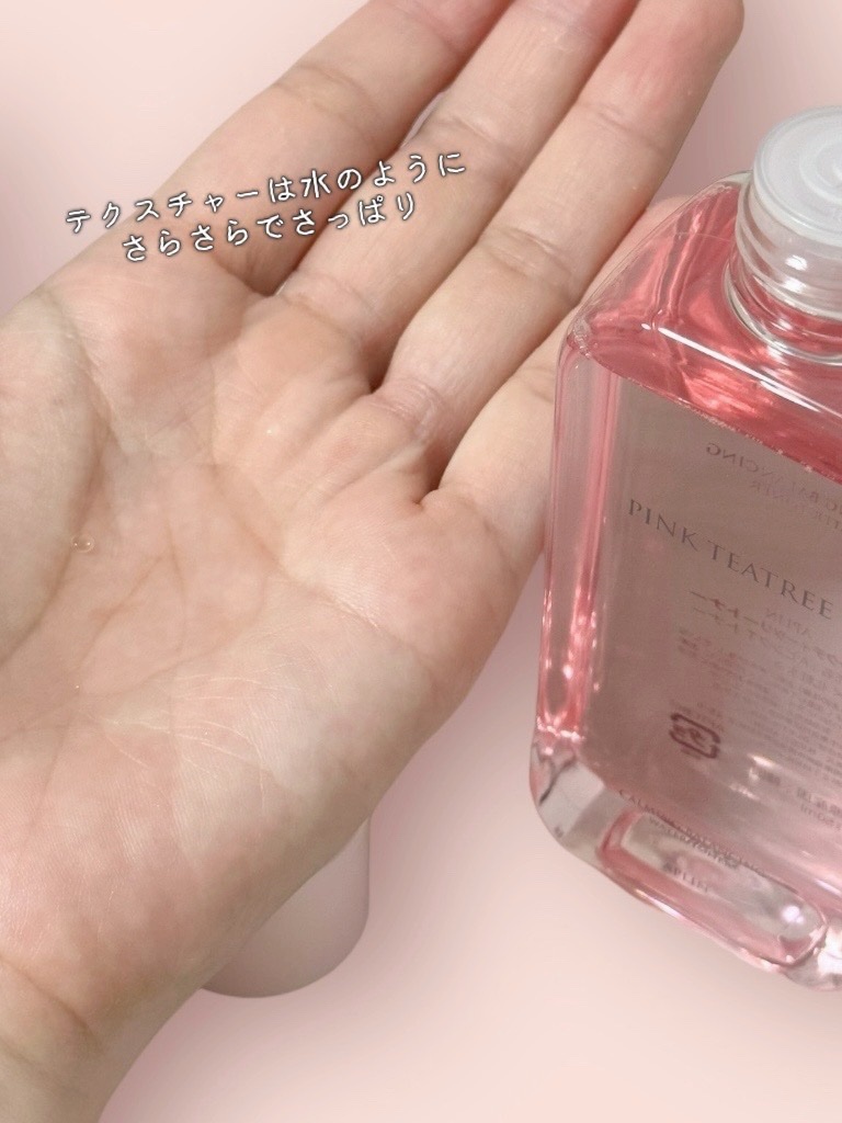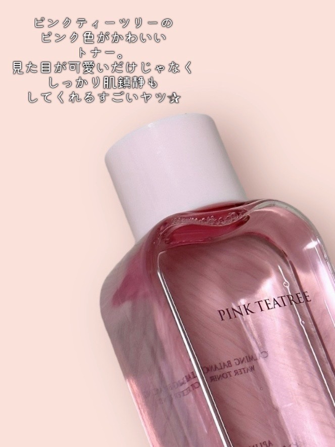 ピンク色がかわいいピンクティーツリートナーのご紹介です☘️💓 ✔︎ティーツリーやツボクサ成分 (CICA)配合。ニキビや肌荒れに鎮静効果のあるトナー。 お肌がゴクゴク飲み込んでいく感じ。保湿感もしっかり感じられる◎