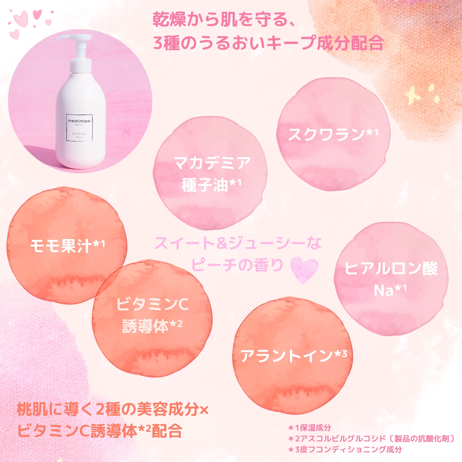 濡れたお肌に使えるインバスボディ乳液 ✔︎︎︎︎乾燥から肌を守る3種のうるおいキープ成分配合 スイート&ジューシーなピーチの香り🍑 ポンプ式で片手で出せるから便利です。 お風呂場の中で全身の保湿ケアが出来て嬉しいしピーチ🍑の香りが良い匂い。