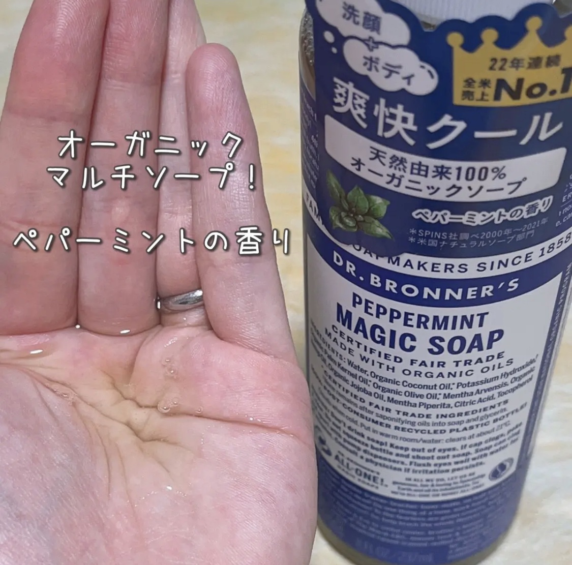 #スキンケアの衣替え1本で全身使えるマルチソープ✨これから蒸し暑くなる季節、ボディソープも爽快感感じるものがいいよね。ドクターブロナーマジックソープ237mlペパーミント夏にぴったりのフレーバー「ペパーミント」🤍日本では、「薄荷(ハッカ)」と...
