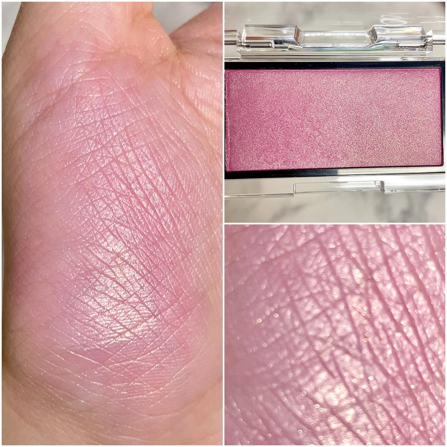 \かわいすぎて事件🤯💘⚡️濡れツヤハイライト/ 上品でキラキラのツヤが美しすぎると発売前から話題でしたね🙌 エナメル+キルティング加工のケースはツルツルぷにぷに♬ 薄型なので持ち運びにも便利!かわいいので無駄に持ち歩こう🙋♀️(?) 細かなピンクパールが温かみのあるツヤを演出してくれます💗 とてもしっとりしたパウダーで粉感がなく、繊細な輝きが長続きします👏 大粒の偏光ラメがギラギラ🤩🥳祭りじゃ〜!といった感じ笑 ホワイトカラーで輝きが目立つので濡れたようなツヤ感が出ます✨ マスクメイクでも頬骨より少し上のCゾーンに入れれば隠れずツヤ感が綺麗に映えます🥰 ラメが大粒で強いのでアイメイクの仕上げに入れても💮 結果万能なのとちょっと奇抜なの♥️ 両方文句なしにかわいかったので満足です🧚♀️笑