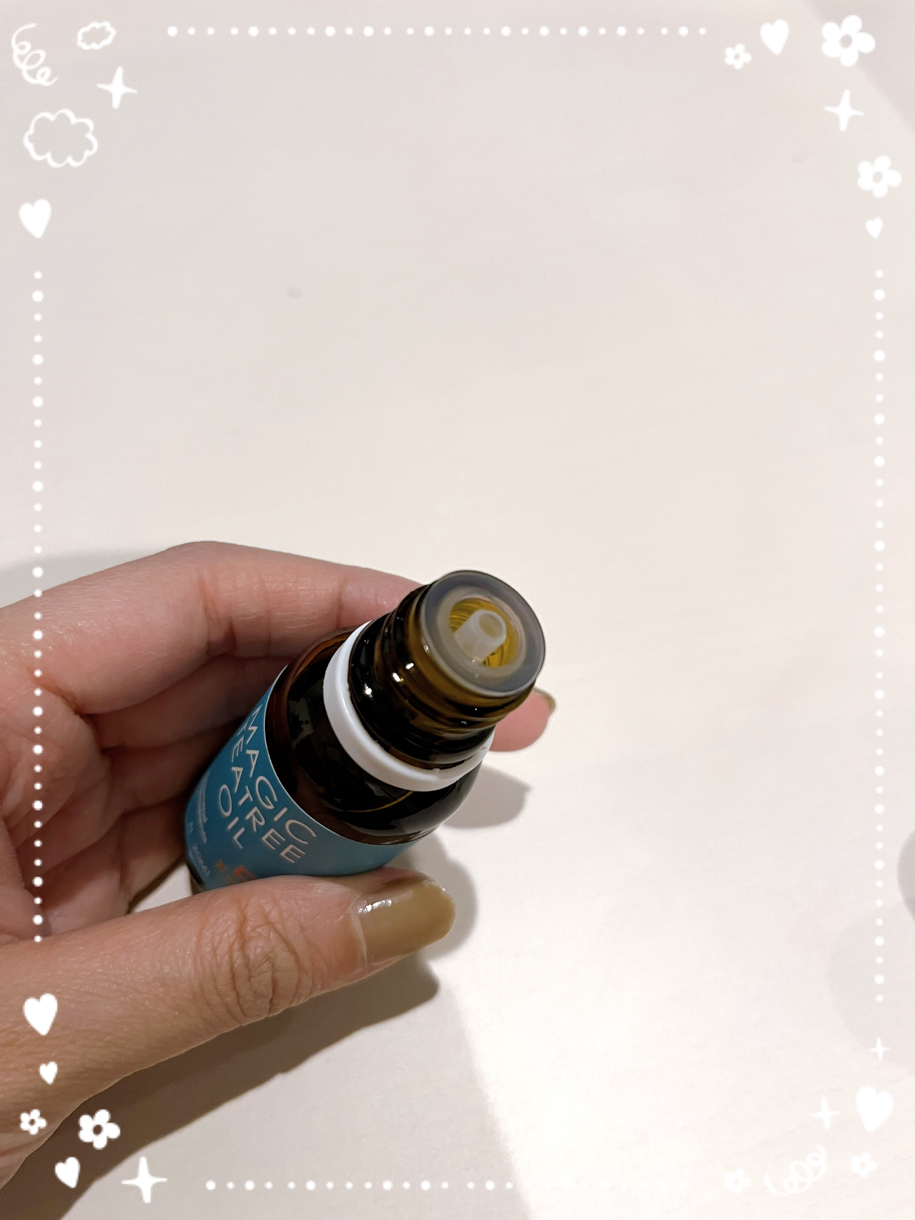 - マジックティーツリーオイルは、乾燥や皮脂による肌悩みをスポットケアし、整える商品です。ブラン代表の整肌成分である4‐テルピネオールで肌トラブルの原因の1つである皮脂を素早くケアします。 【このような方におススメ】 ✔乾燥による肌悩みが気になる方 ✔過度な皮脂と油分が気になる方 ✔べたつきのないスキンケアを探されている方 ✔肌荒れを防ぎたい方 ✔年齢性別肌タイプ関係なく使用できる商品を探されている方 【使用方法】 ①洗顔後、コットンに適量を取り、軽くふき取った後馴染ませます。 ②気になる部分の肌をきれいに洗顔後、トナー→クリームの順でお肌を整えます。 ③綿棒に1~2滴落とし、気になる部分に塗ります。 経過を見て朝晩のスキンケアの最後の段階に塗ることを繰り返します。