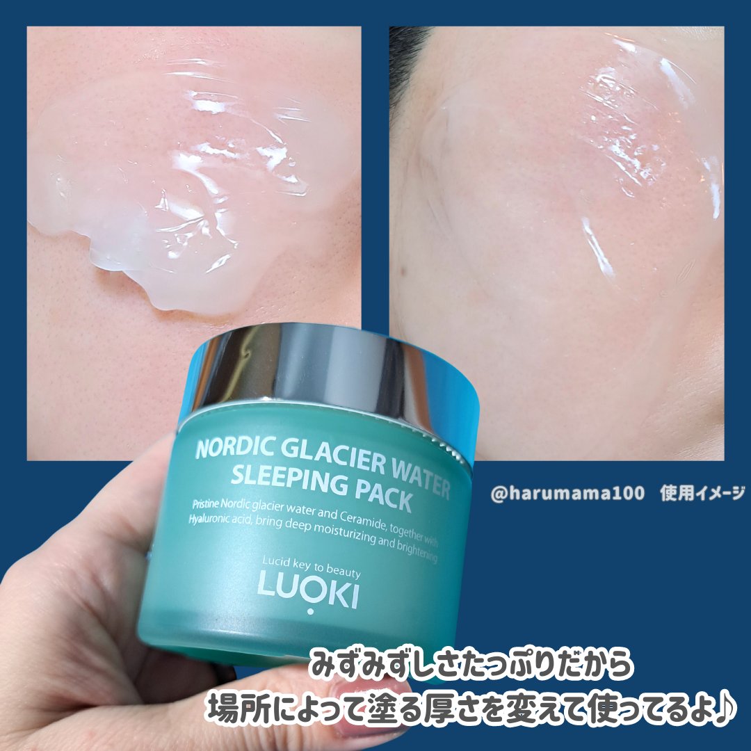 LUOKI ノルディック氷河水スリーピングパックぷるっぷるのジェルのようなテクスチャのフェイスクリーム。とってもみずみずしい使い心地の良さがお気に入りです◎夜のスキンケアに、たっぷり塗ってスリーピングパックとしても◎朝のスキンケアにもベタつか...