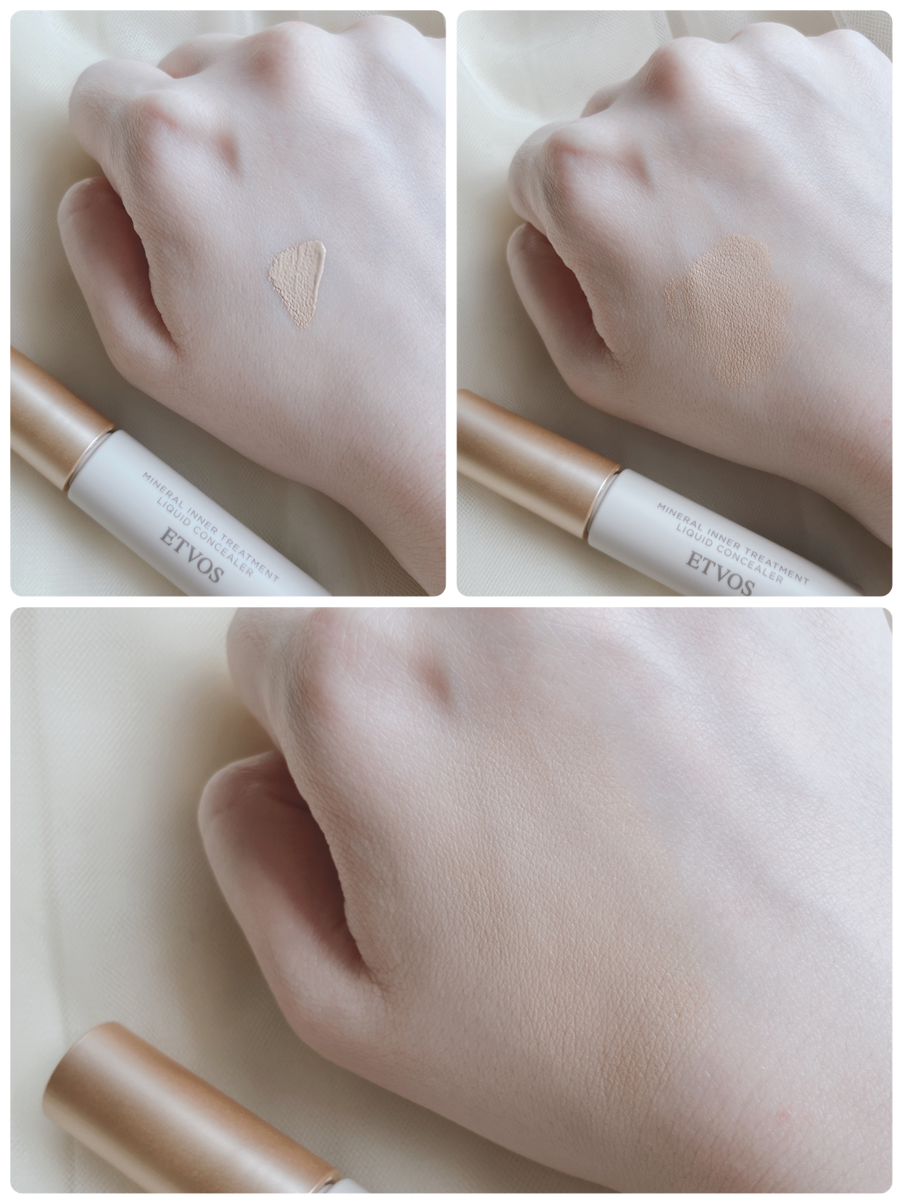 雑誌付録のポーセリンべージュは透明感がグッとあがります!カバー力がめちゃくちゃあるわけではないですがナチュラルな仕上がり ミネラルインナートリートメントリキッドコンシーラーはオレンジベージュとイエローベージュを使い分けて色ムラを解消しています 石鹸落ちで美容液いりのミネラル下地とミネラルコンシーラーなのでお肌に負担がかからないなーと