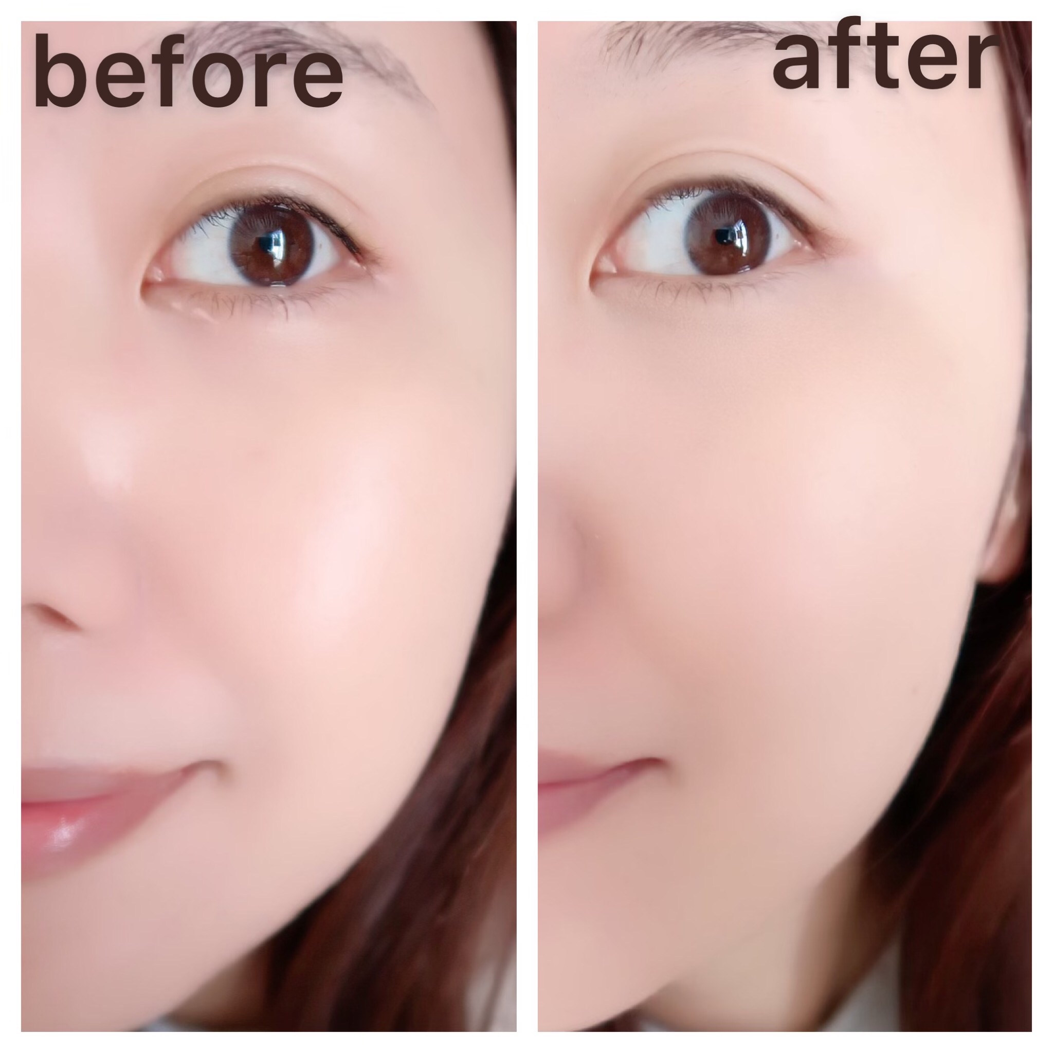 優秀な下地のいいところは ファンデーションや コンシーラーが少なくすむくらいに綺麗に仕上がるところ! 4つのカラーは肌の気になるところを補整し、 なりたい仕上がりを叶えます。 部分使いもおすすめ! ハート塗り♡で部分使いをお試ししてみました。 カバーしたいところが多かったので 少しハートは多め(笑) それぞれに効果が現れているかと思います。 毛穴がつるん!とカバーされて 肌の質感が綺麗に変わっていることも注目🤗✨ 一日中皮脂浮きを抑える崩れにくさも有り難い! サラッとしているので手早く伸ばすことがオススメです✨