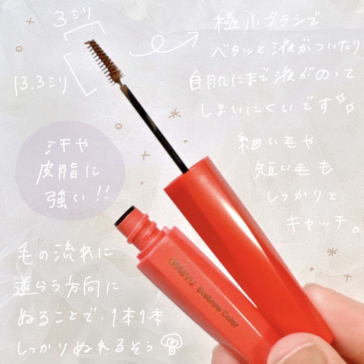 デジャヴュさまからいただきました!.#ガチモニター_デジャヴュフィルム眉カラー#pr#dejavu#デジャヴュ#フィルム眉カラー.極小ブラシのデジャヴュ、眉マスカラ!ちょっと小さいかな、と思ったけど小ぶりブラシで、眉毛をとかしながら眉マスカラ...