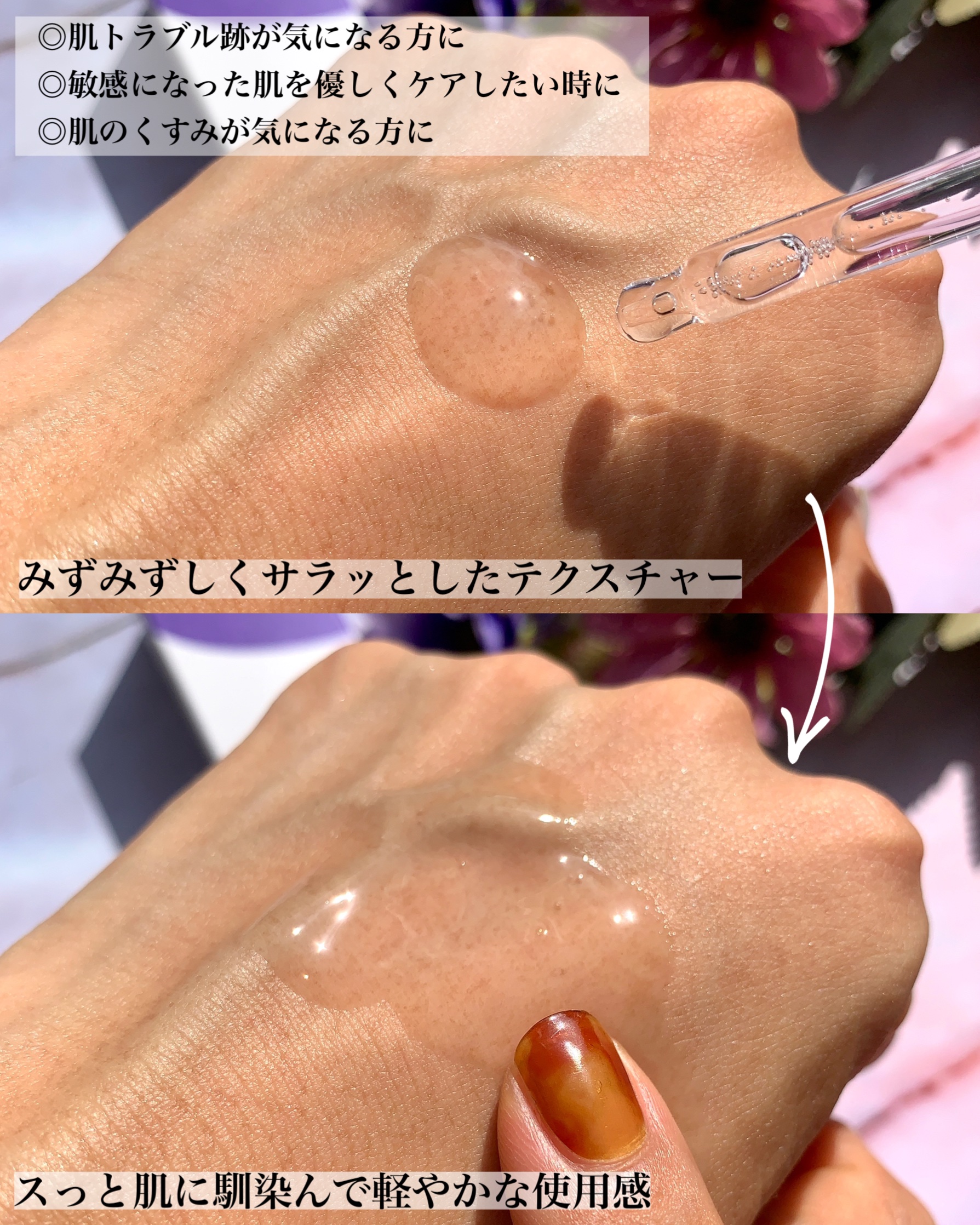 | 軽くてみずみずしくベタつきも気にならない◎朝晩取り入れやすいです💜 | 詳細を見る | ||