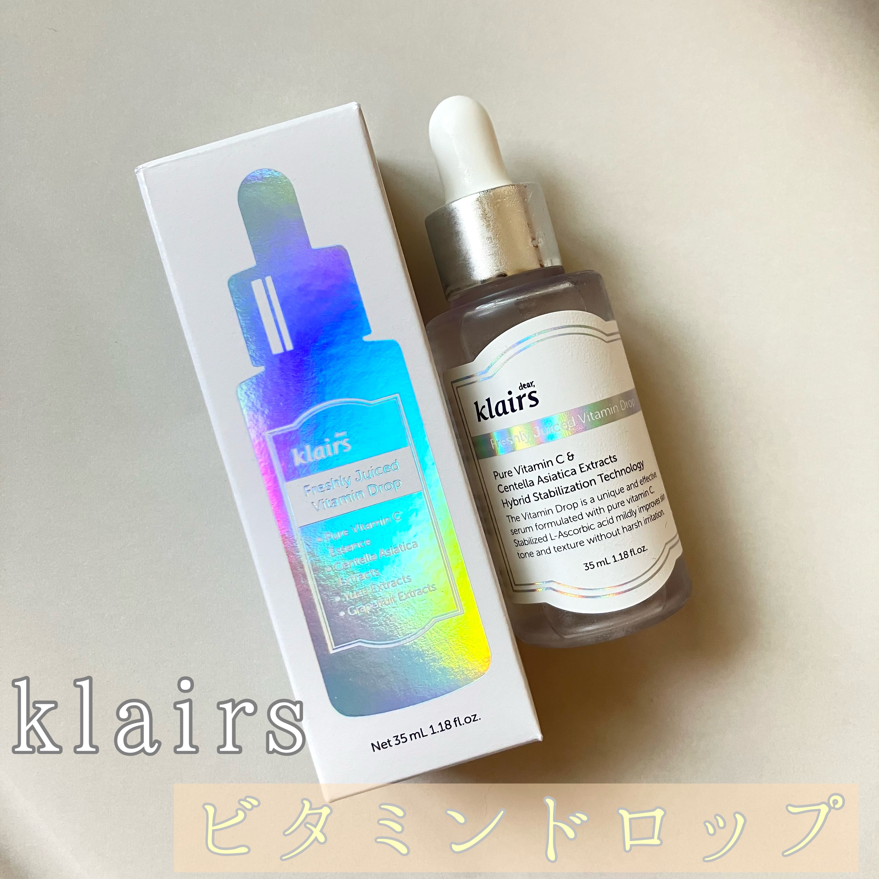 肌が飲むビタミンジュースと呼ばれてる Freshly Juiced Vitamin Drop𓂃٭𓈒𓏸 累計300万本売れた klairsを代表するビタミンセラム💛 ビタミンCといえば刺激が強く感じる方も多いけど、このセラムはビタミンCと保湿成分を適切な比率で配合していて初心者でも使いやすい商品になってるみたい♡⃜ 塗るとぽわ~んと温かさを感じるんだけどこれは肌に浸透にしてPHが正常に整っている証拠なんだって✨