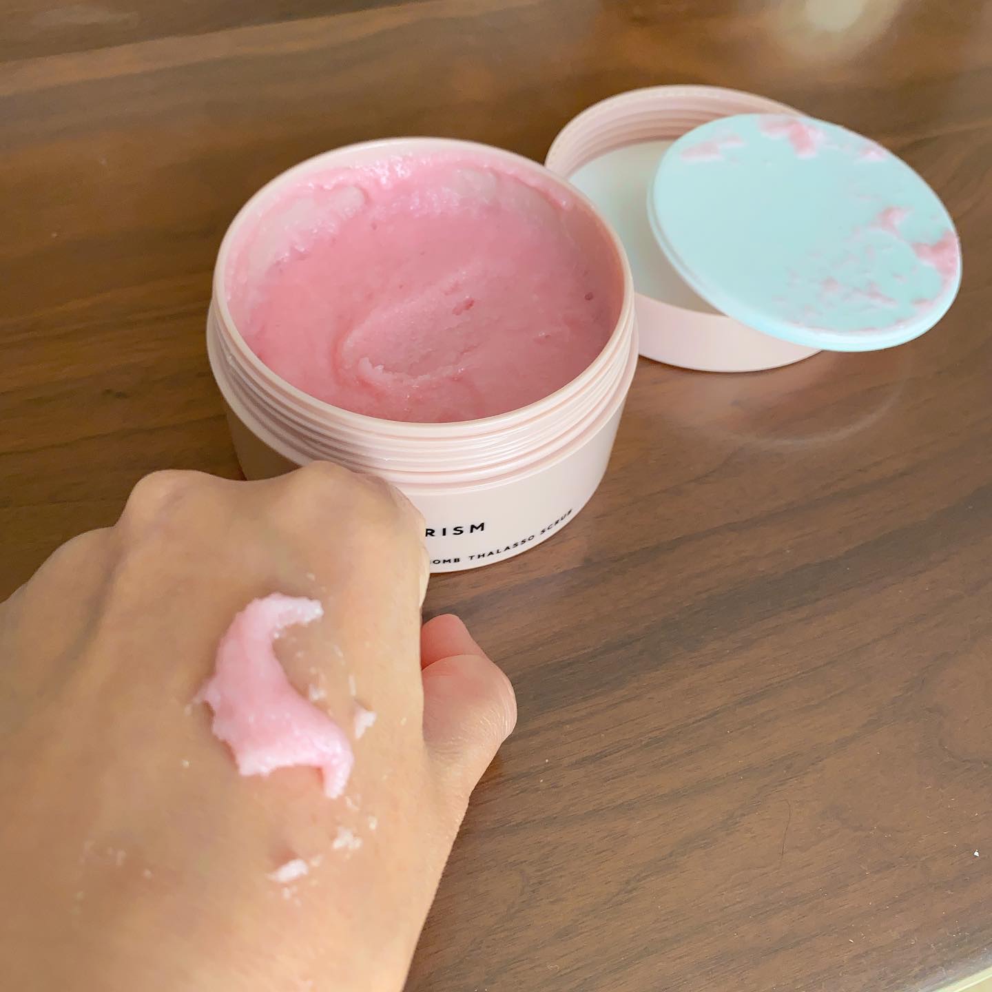 AGARISMキューミー スウィートボムタラソスクラブピオニーブーケの香りを使用しました😊雑誌sweetとのコラボで作られたヒップスクラブになっております✨座りっぱなしや下着の締め付けなどで発生するお尻の黒ずみやザラつき・乾燥ニキビなどをケア...