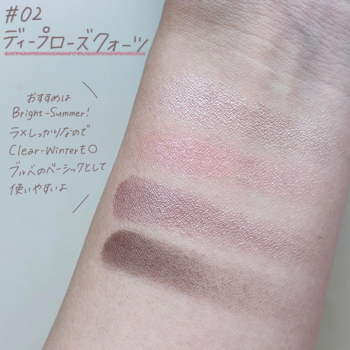 なめらかで本当に塗りやすく 1回塗りだとベースっぽくシアーに 2回以上重ね塗りするとしっかりに。 そして、よれない!! こすっても落ちにくく しっかり密着〜!!!って感じなので これからの暑い時期にも心強いです💪 どの色みも肌馴染みが良く ぎらつかないけれど艶っぽいカラー。なめらかな描き心地も本当に良いので ぜひ試してみてね🥰