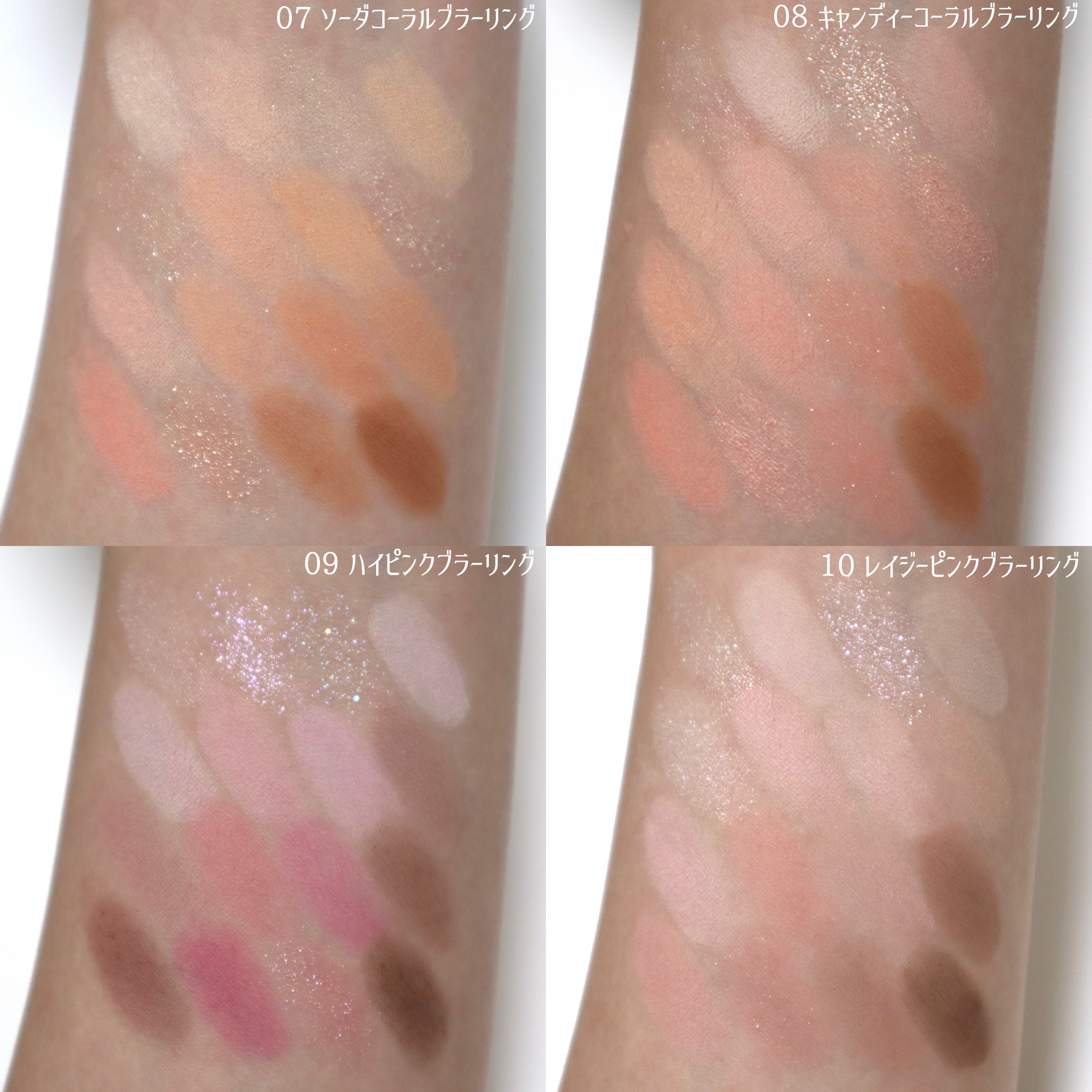 - <02 ライブリーブラーリング> タルク、マイカ、酸化チタン、ナイロン 12、シリカ、ステアロイルオキシステアリン酸オクチルドデシル、フェニルトリメチコン、ミリスチン酸Mg、ジメチコン、メチルプロパンジオール、ヘキサ(ヒドロキシステアリン酸/ステアリン酸/ロジン酸)ジペンタエリスリチル、リンゴ酸ジイソステアリル、酸化鉄、黄4、プロパンジオール、黄5、赤226、水添レシチン、水酸化Al、メチコン、カルミン、マルトデキストリン <03 サンセットブラーリング> ジメチコン、合成フルオロフロゴパイト、酸化チタン、メタクリル酸メチルクロスポリマー、マイカ、ホウケイ酸(Ca/チタン)、ジエチルヘキサン酸ネオペンチルグリコール、ラウリン酸ヘキシル、(ジメチコン/ビニルジメチコン)クロスポリマー、ナイロン 12、(セバシン酸/イソパルミチン酸)ジグリセリル、セスキイソステアリン酸ソルビタン、ミリスチン酸Mg、ヘキサ(ヒドロキシステアリン酸/ステアリン酸/ロジン酸)ジペンタエリスリチル、フェノキシエタノール、プロパンジオール、合成ワックス、酸化鉄、シリカ、トリエトキシカプリリルシラン、酸化スズ、カルミン、トコフェロール <05 ミューテッドコーラルブラーリング> タルク、マイカ、酸化鉄、シリカ、ナイロン 12、グンジョウ、ステアロイルオキシステアリン酸オクチルドデシル、フェニルトリメチコン、ミリスチン酸Mg、窒化ホウ素、ステアリン酸Mg、メチルプロパンジオール、ジメチコン、プロパンジオール、トリエトキシカプリリルシラン、ラウロイルリシン、水添レシチン、カルミン、マルトデキストリン <07 ソーダコーラルブラーリング> マイカ、オクテニルコハク酸デンプンAl、酸化チタン、ステアロイルオキシステアリン酸オクチルドデシル、フェニルトリメチコン、ミリスチン酸Mg、酸化鉄、マンガンバイオレット、窒化ホウ素、ステアリン酸Mg、メチルプロパンジオール、シリカ、ジメチコン、プロパンジオール、ステアリン酸ジメチコノール、トリエトキシカプリリルシラン、グンジョウ、ヒドロキシプロピルビスパルミタミドMEA、マカデミア種子油、サラソウジュ種子脂、水酸化Al、メチコン、カオリン、赤226 <14 キャラメルブラーリング> 1.ホウケイ酸(Ca/チタン)、タルク、マイカ、酸化チタン、ジエチルヘキサン酸ネオペンチルグリコール、フェニルトリメチコン、シリカ、ヘキサ(ヒドロキシステアリン酸/ステアリン酸/ロジン酸)ジペンタエリスリチル、ミリスチン酸Mg、リンゴ酸ジイソステアリル、ネオペンタン酸イソステアリル、ステアロイルオキシステアリン酸オクチルドデシル、マカデミア種子油、メチルプロパンジオール、ポリブテン、ステアリン酸Mg、プロパンジオール、ジメチコン、ラウロイルリシン、トリエトキシカプリリルシラン、酸化スズ、酸化鉄、カルミン 2.ホワイトソルト:ホウケイ酸(Ca/チタン)、酸化チタン、ジフェニルシロキシフェニルトリメチコン、ホウケイ酸(Ca/Na)、ポリプロピレン、マイカ、オクチルドデカノール、リンゴ酸ジイソステアリル、ダイマージリノール酸水添ヒマシ油、ポリブチレンテレフタレート、ダイマージリノール酸(フィトステリル/イソステアリル/セチル/ステアリル/ベヘニル)、ホウケイ酸(Ca/Al)、アクリレーツコポリマー、(エチレン/VA)コポリマー、メチルプロパンジオール、プロパンジオール、シリカ、ジステアルジモニウムヘクトライト、ステアリン酸Mg、炭酸プロピレン、酸化スズ、酸化鉄 3.バタークリーム:タルク、マイカ、酸化チタン、シリカ、ステアロイルオキシステアリン酸オクチルドデシル、フェニルトリメチコン、マカデミア種子油、メチルプロパンジオール、オクチルドデカノール、ヘキサ(ヒドロキシステアリン酸/ステアリン酸/ロジン酸)ジペンタエリスリチル、リンゴ酸ジイソステアリル、ジメチコン、ミリスチン酸Mg、ステアリン酸Mg、プロパンジオール、ステアリン酸ジメチコノール、水添レシチン、トリエトキシカプリリルシラン、水酸化Al、メチコン、酸化鉄 4.イエロービーン:タルク、マイカ、オクテニルコハク酸デンプンAl、シリカ、酸化チタン、トリ(カプリル酸/カプリン酸)グリセリル、トリエチルヘキサノイン、酸化鉄、ミリスチン酸Mg、マカデミア種子油、メチルプロパンジオール、ジメチコン、トリエトキシカプリリルシラン、プロパンジオール、(ビニルジメチコン/メチコンシルセスキオキサン)クロスポリマー、ヘキサ(ヒドロキシステアリン酸/ステアリン酸/ロジン酸)ジペンタエリスリチル、ステアリン酸Mg、水酸化Al、メチコン、グンジョウ、黄4 5.ベージュ:タルク、マイカ、酸化チタン、ステアロイルオキシステアリン酸オクチルドデシル、フェニルトリメチコン、シリカ、マカデミア種子油、サラソウジュ種子脂、ミリスチン酸Mg、メチルプロパンジオール、トリエトキシカプリリルシラン、ジメチコン、ステアリン酸Mg、プロパンジオール、水添レシチン、ラウロイルリシン、ステアリ