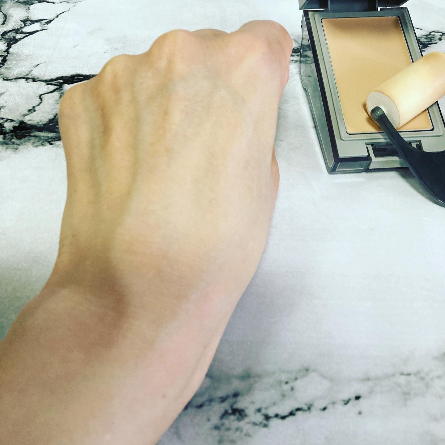 ローラーで付けるバーム状美容液ファンデーションです✨ 大人ピンクが素敵な厚みのあるコンパクトケースで、ローラーが収納出来ます✨ コロコロとファンデーションを肌に付けてみると、とてもなめらかに均一にのせることができて、ムラなく綺麗に仕上がりました✨ しっとりとした使用感です✨ スキンケア後、化粧下地なしでもなめらかな仕上がり ⭐️皮脂固化パウダー配合 ⭐️長時間保湿感が持続します