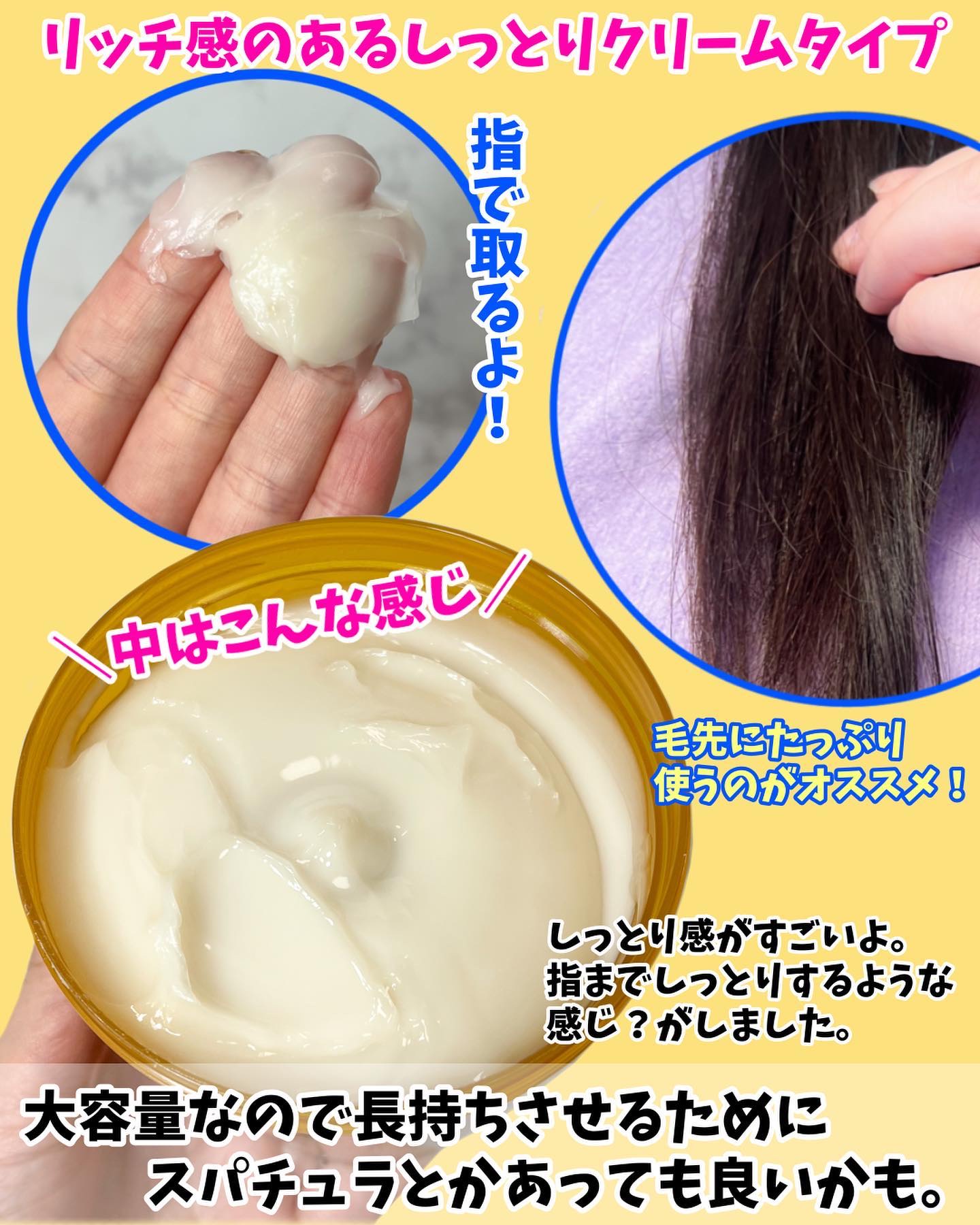 | ヘアケア・スタイリングランキング第42位 | ねっとりした濃厚なテクスチャ ダメージ気にしてる人にオススメ しっとり艶感ある髪になる | 詳細を見る | |