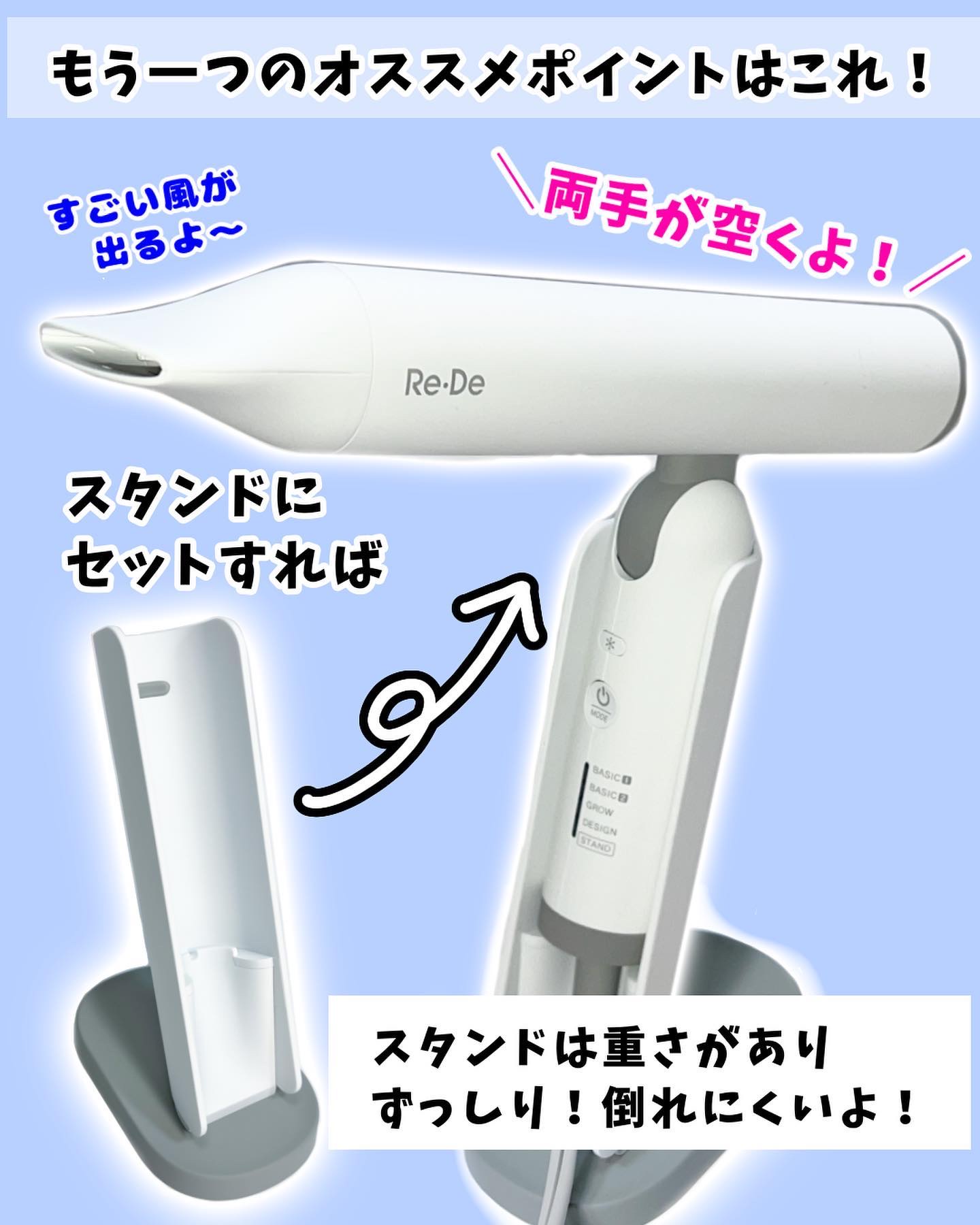 ・ Re・De様のキャンペーンにて当選し、 ◯Re・DeHairdry をいただきました。 “風の速さと軽さが生む、新しいヘアドライヤー。”初めて手に取った時に、本当に軽くてびっくりした!たった255g。見た目もスリム。それなのに、驚き...