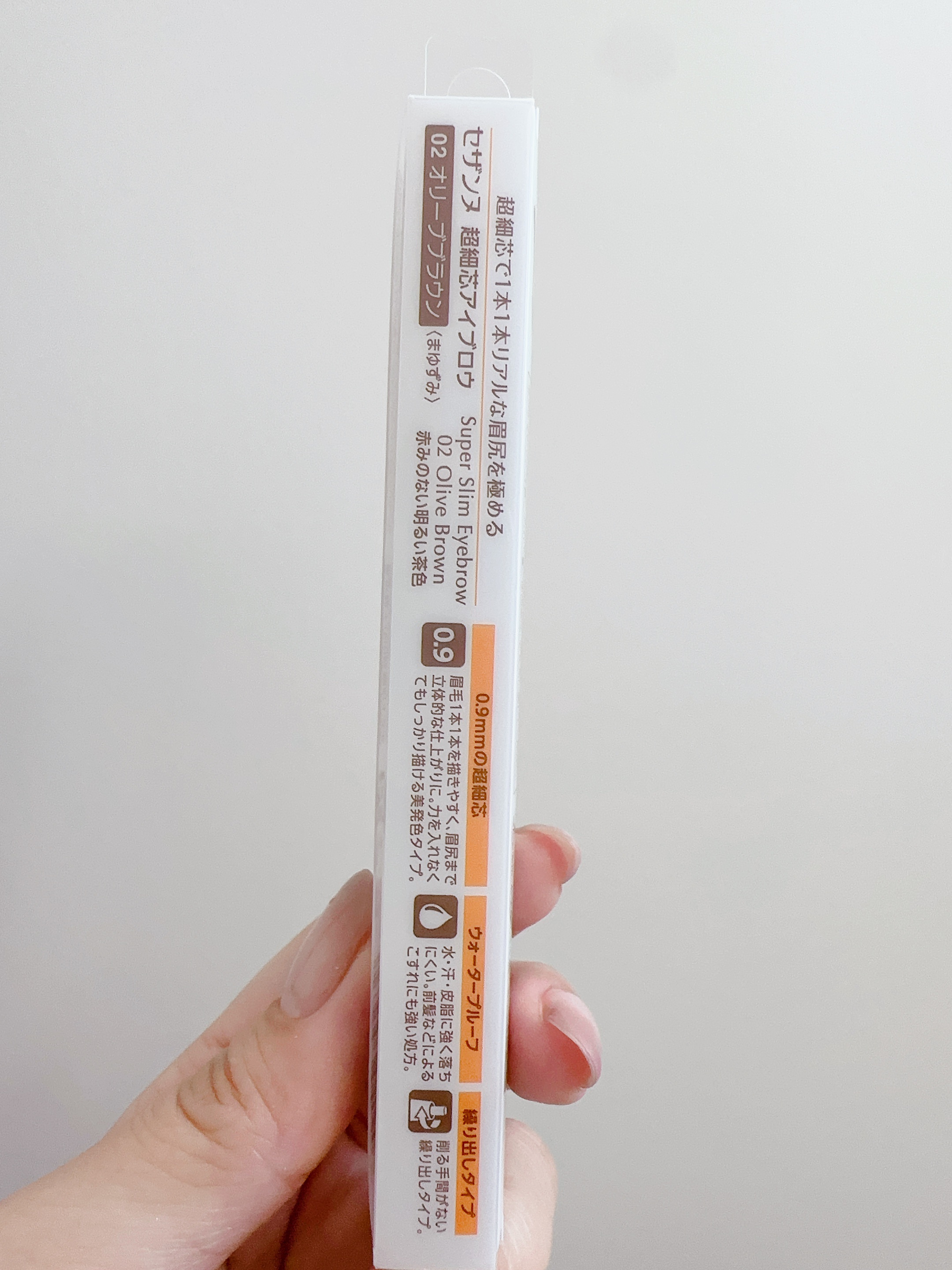 - 眉尻の1本1本まで描ける0.9mmのアイブロウ。 眉毛1本1本を描きやすく、眉尻も繊細に描ける超細芯。 力を入れなくてもしっかり描ける美発色タイプ。 水・汗・皮脂に強いウォータープルーフ。