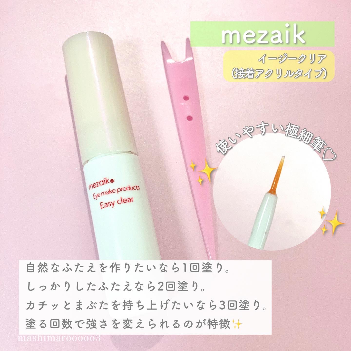 デリケートな目もとに配慮された ケア重視のふたえのり というキャッチコピーに惹かれて、 初めての接着タイプに挑戦! 肌に優しい合成のりをベースにした 処方なのだそう✨ サラリとしたテクスチャーで、 薄く塗りやすく、乾くのも早かったです◎ 一緒にメザイクの目元用美容液も使いました💞 肌に嬉しい美容成分が配合されていて魅力的✨ ジェル状の美容液ですが、 想像よりも濃密なもっちりテクスチャー! クリームのような塗り心地でした☺️ 密着感のあるような、ピタッとした使い心地で メイク前にも使いやすかったです🙆🏻♀️♡ 目元のハリ感や潤いケアをしたい人に おすすめです🫶🏻