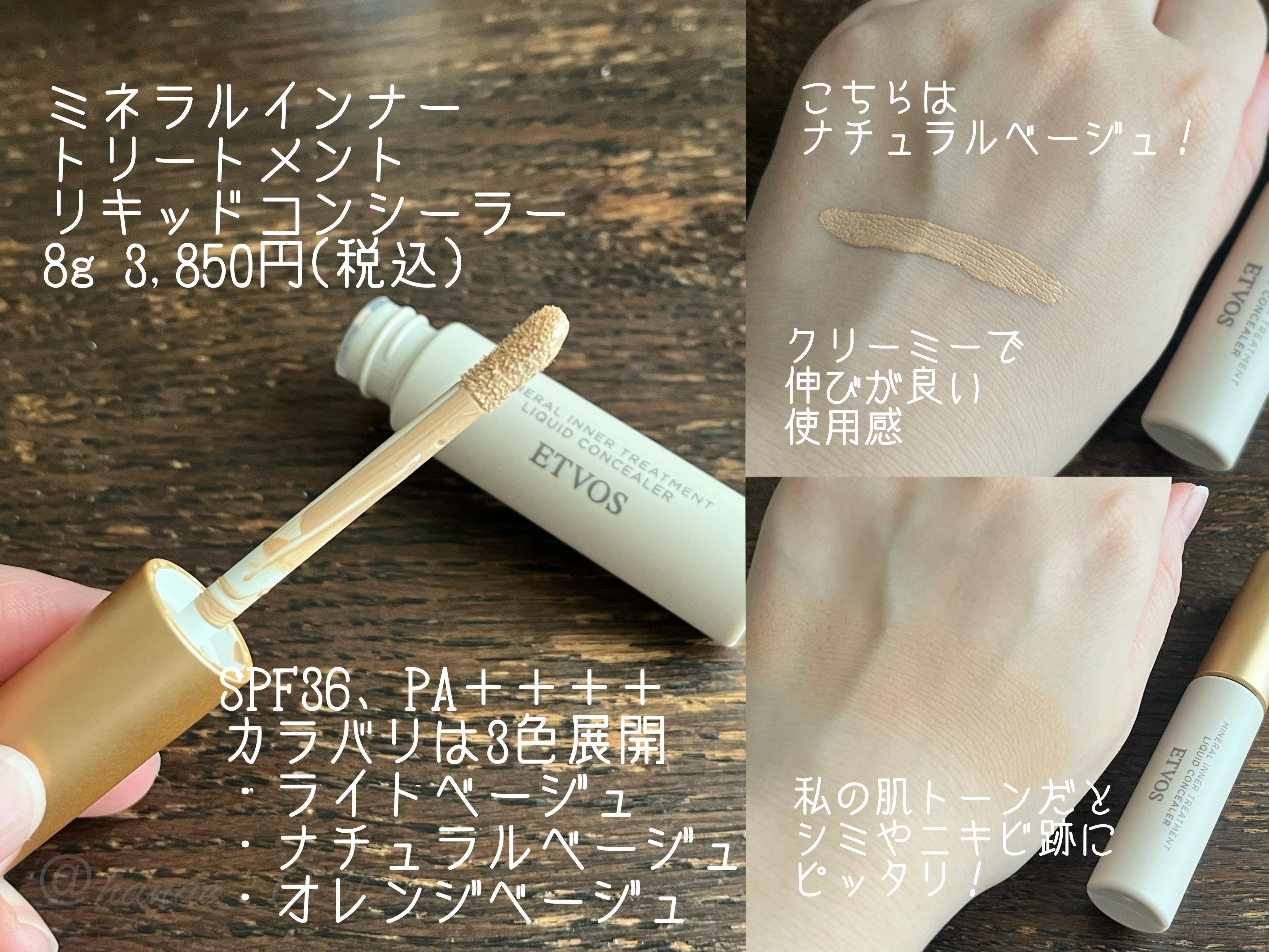 雑誌付録のポーセリンべージュは透明感がグッとあがります!カバー力がめちゃくちゃあるわけではないですがナチュラルな仕上がり ミネラルインナートリートメントリキッドコンシーラーはオレンジベージュとイエローベージュを使い分けて色ムラを解消しています 石鹸落ちで美容液いりのミネラル下地とミネラルコンシーラーなのでお肌に負担がかからないなーと