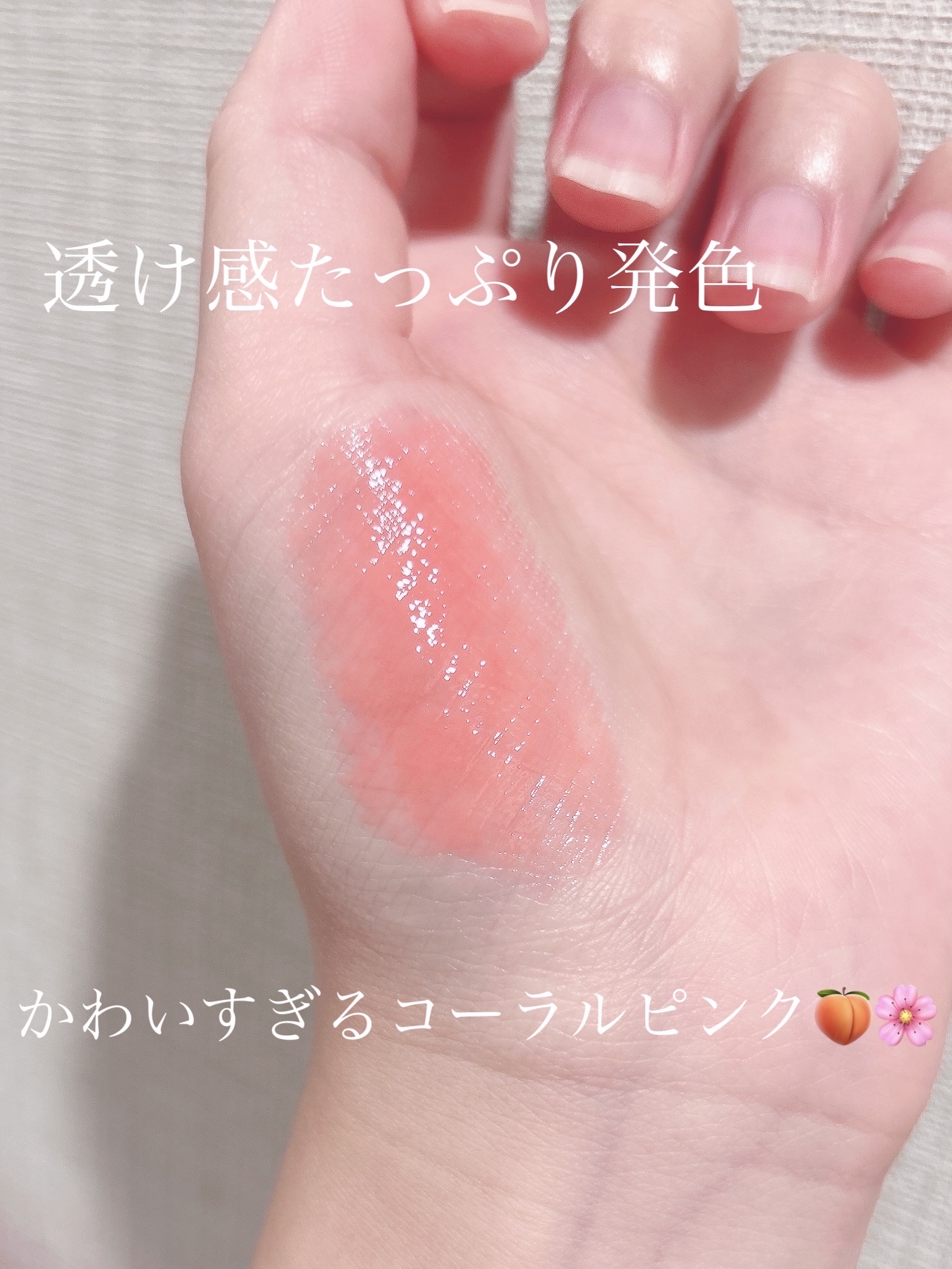 うるうるつやつやでめちゃめちゃかわいい💕 ティントではないので落ちにくい訳ではないですが、スリムなスティック型でぬり直しやすいので私は全然OKです🙂 ぬってるかんじはリップクリームみたいで、ベタベタせずにしっかり保湿されます さくらんぼみたいな香りがついていて、2色とも同じなので、全色同じ香りなのかな、と思います ピンクグリームの方はラメが入っていてかわいいんですが、去年のクリスマスに限定で出たものなので、今買うのは難しいと思います🙇♀️ 定番色もしっかりかわいいのでおすすめです!!