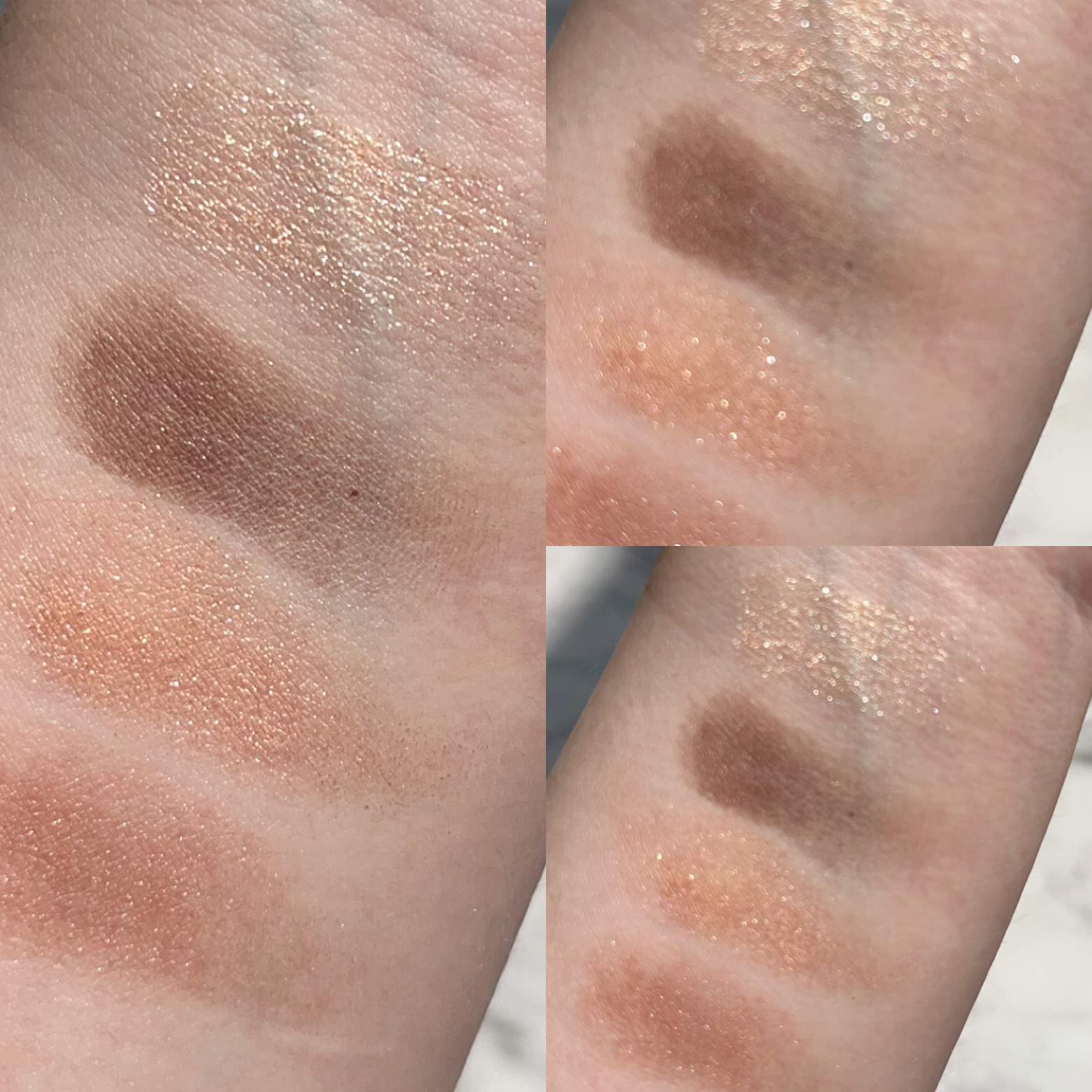 上品なツヤと発色の美容液アイパウダーとも言われる「ミネラルクラッシィシャドー」はクレンジングフリー処方なんだそう…!! やさしい彩度のベージュがグラでになっていて、ブラウンなのに鮮やかさも感じられるような気品…♡ 特に左2色はラメがたっぷりで、キラキラと立体感を演出してくれたよ💕
