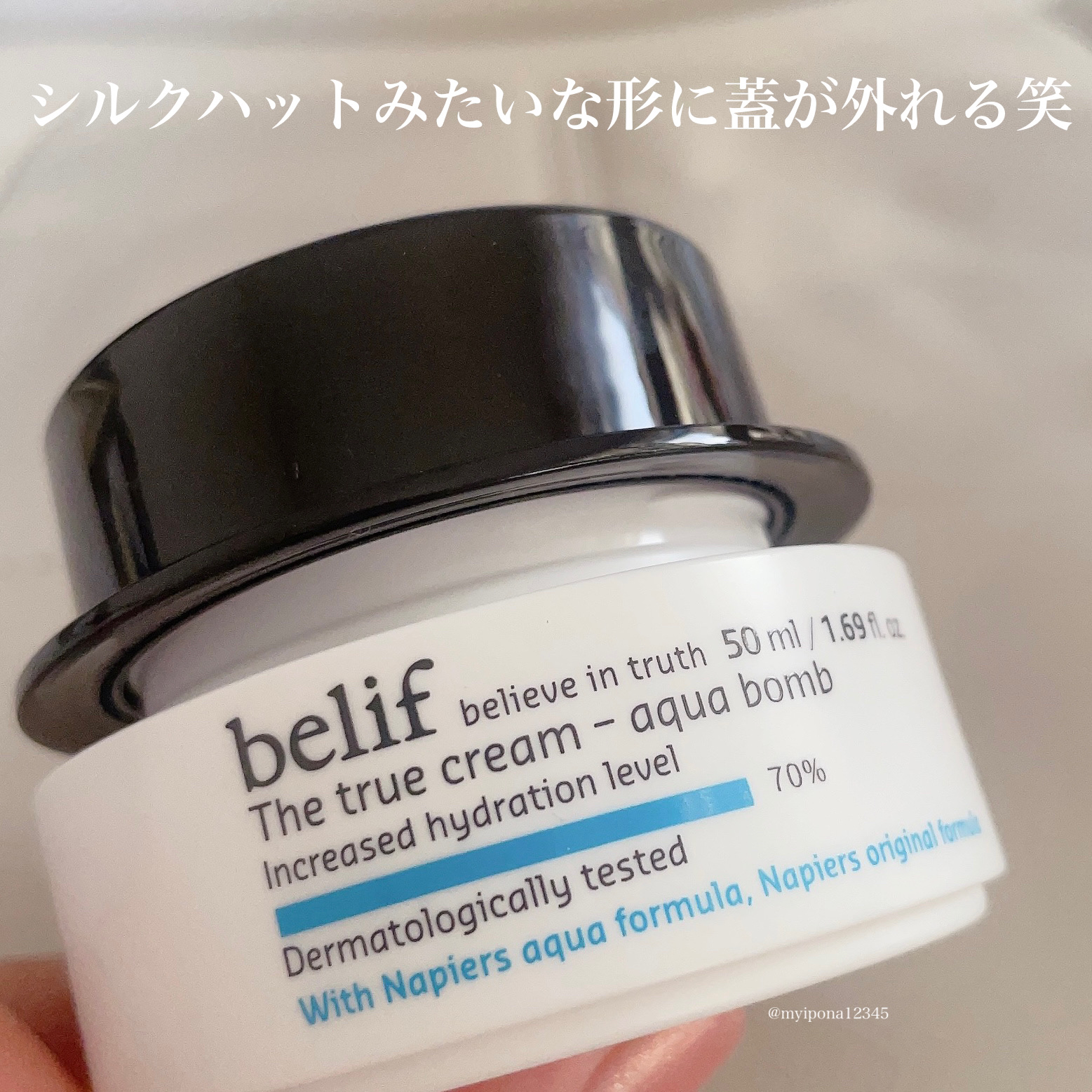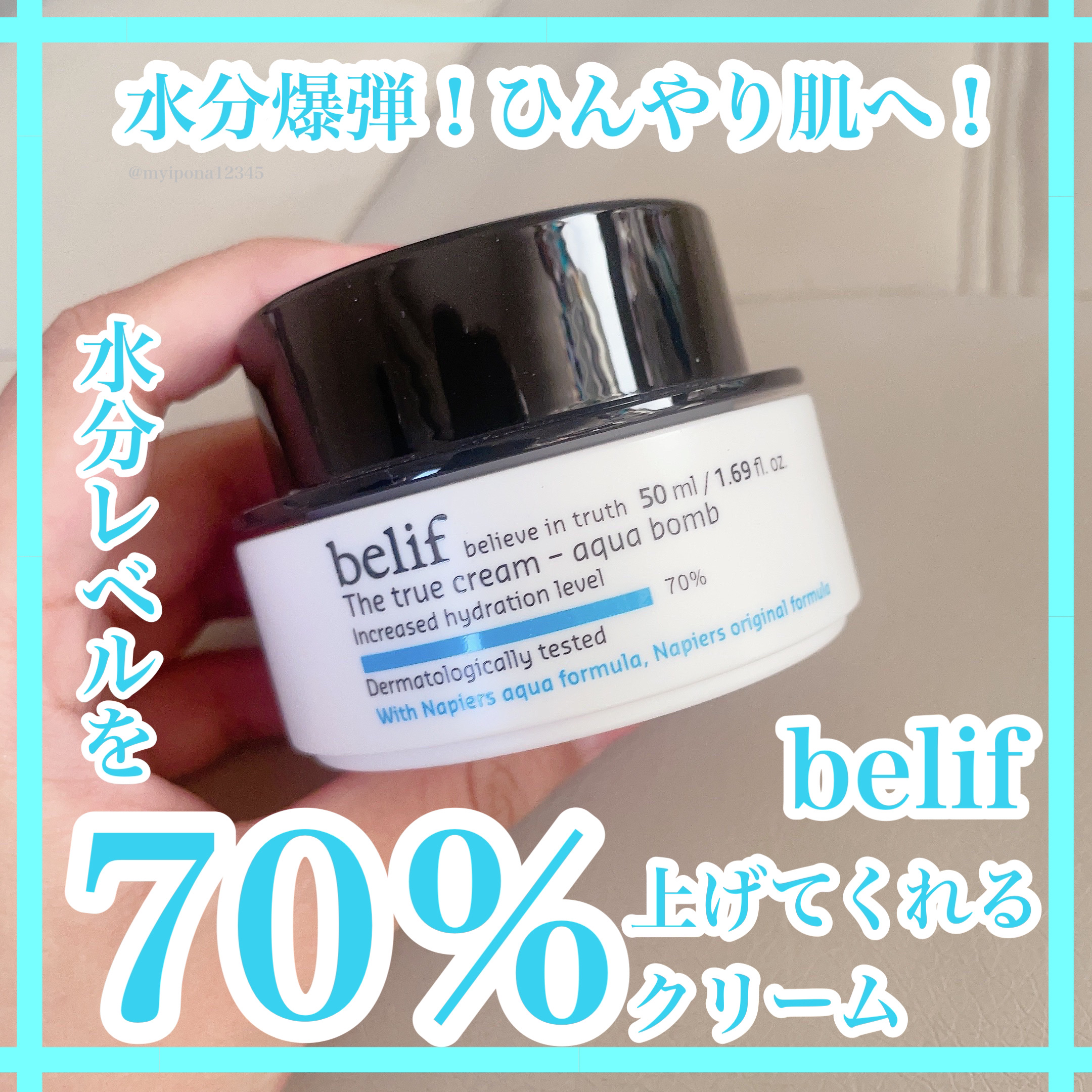 - 肌に触れた瞬間爽快なたっぷり水分感を与えるbelif代表水分爆弾クリーム。高い保湿効果を持つ女性のための保湿ハーブ、レディースメントール含有でロンドンのように変化に富んだ天気の日にも肌の潤いをキープ!爽快な青みがかったさっぱり水分ジェルクリームでベタつきにくく肌に負担の少ない使い心地で、肌を保護膜で覆います。合成有機色素や動物由来成分を使用しないbelifの真心を込めた処方です。